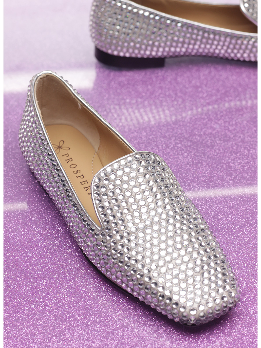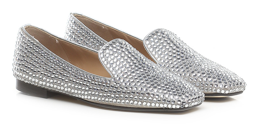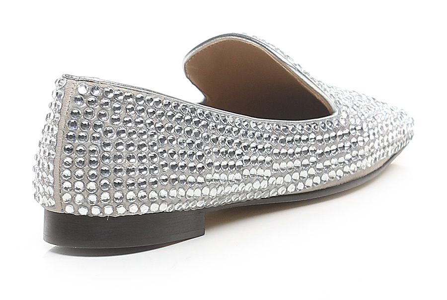 Leather shoe with rhinestones and leather and rubber sole. Heel height 15mm.