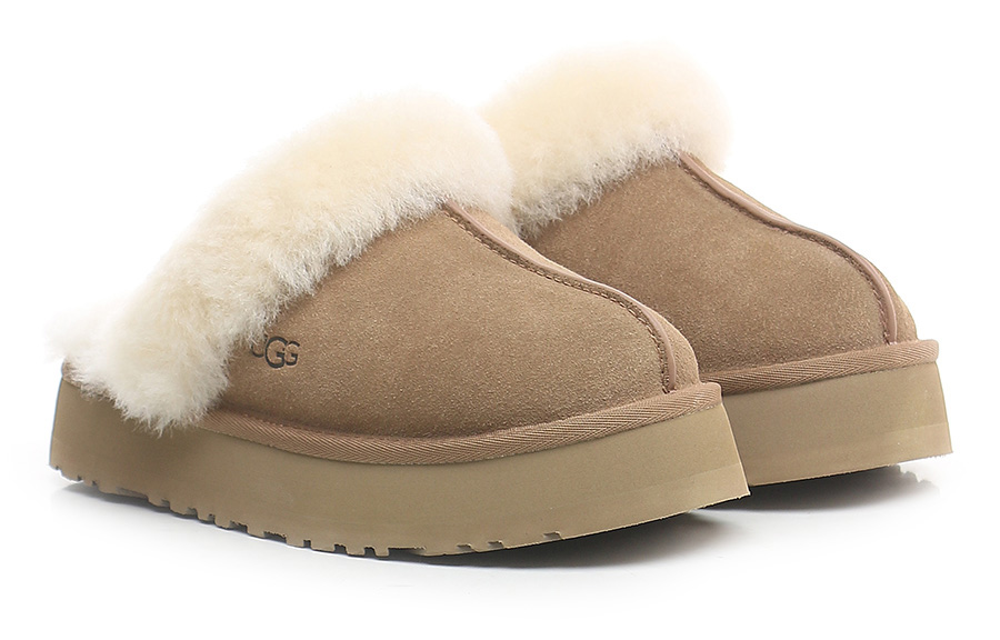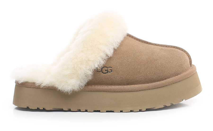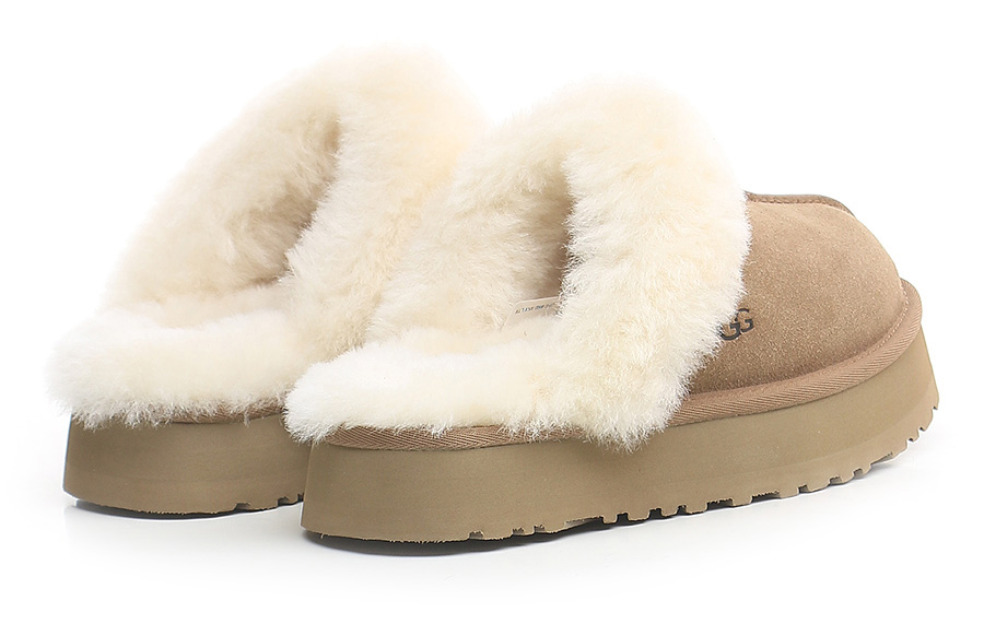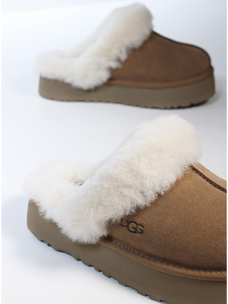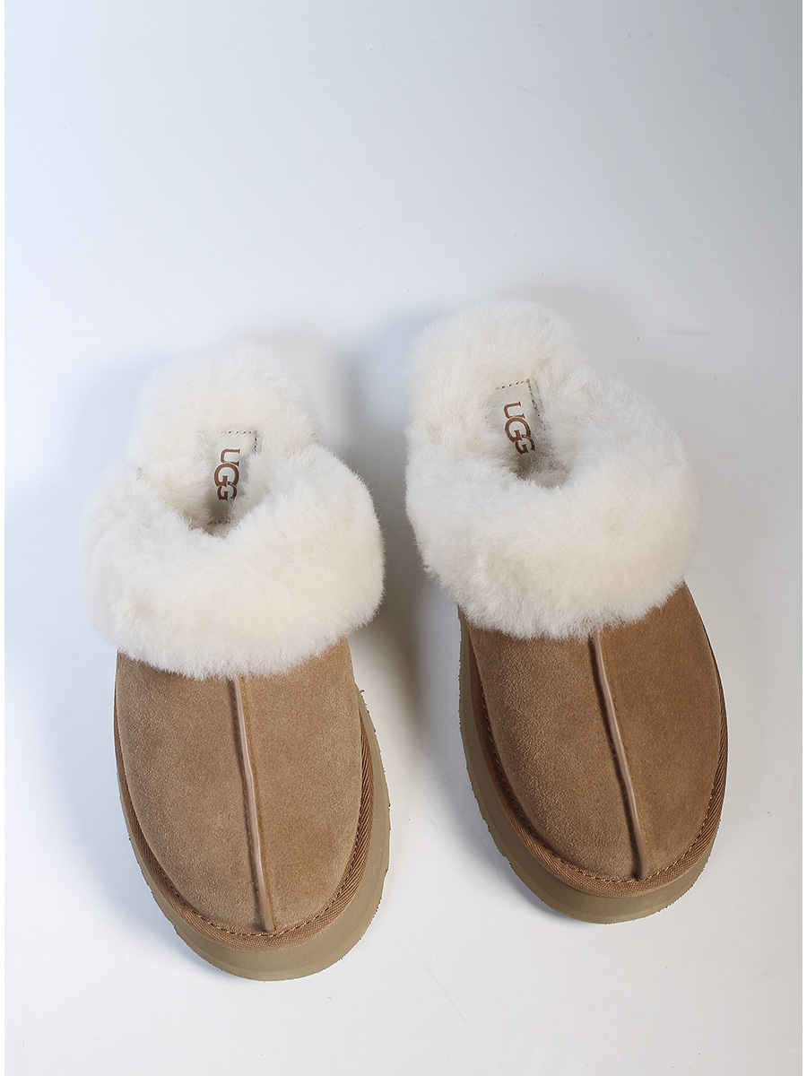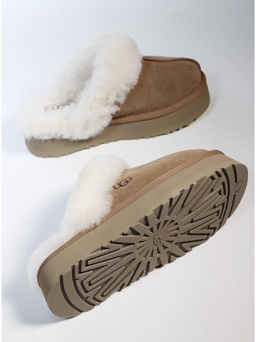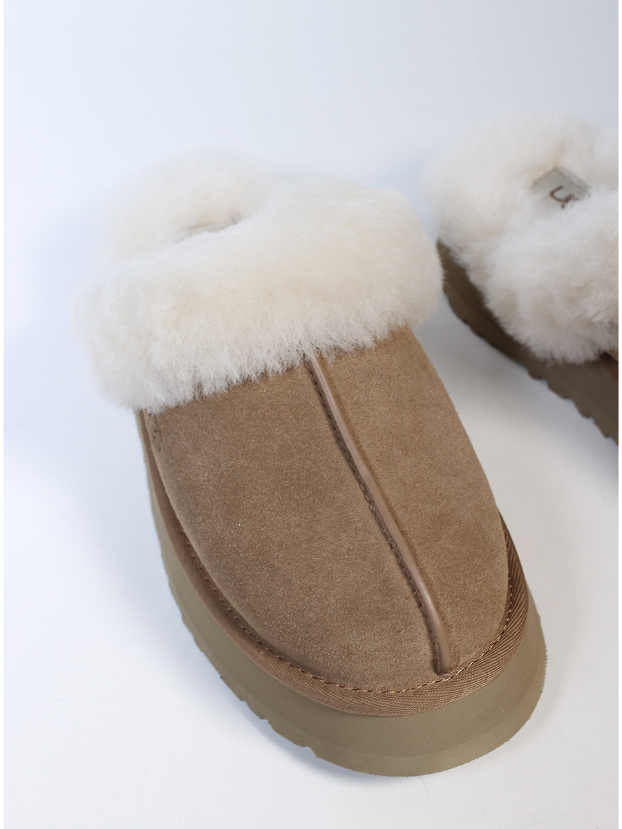 Suede shoe lined in fur. Rubber sole. Sole height 35mm.