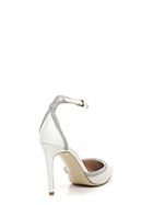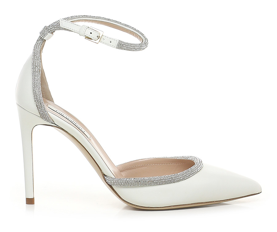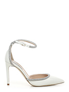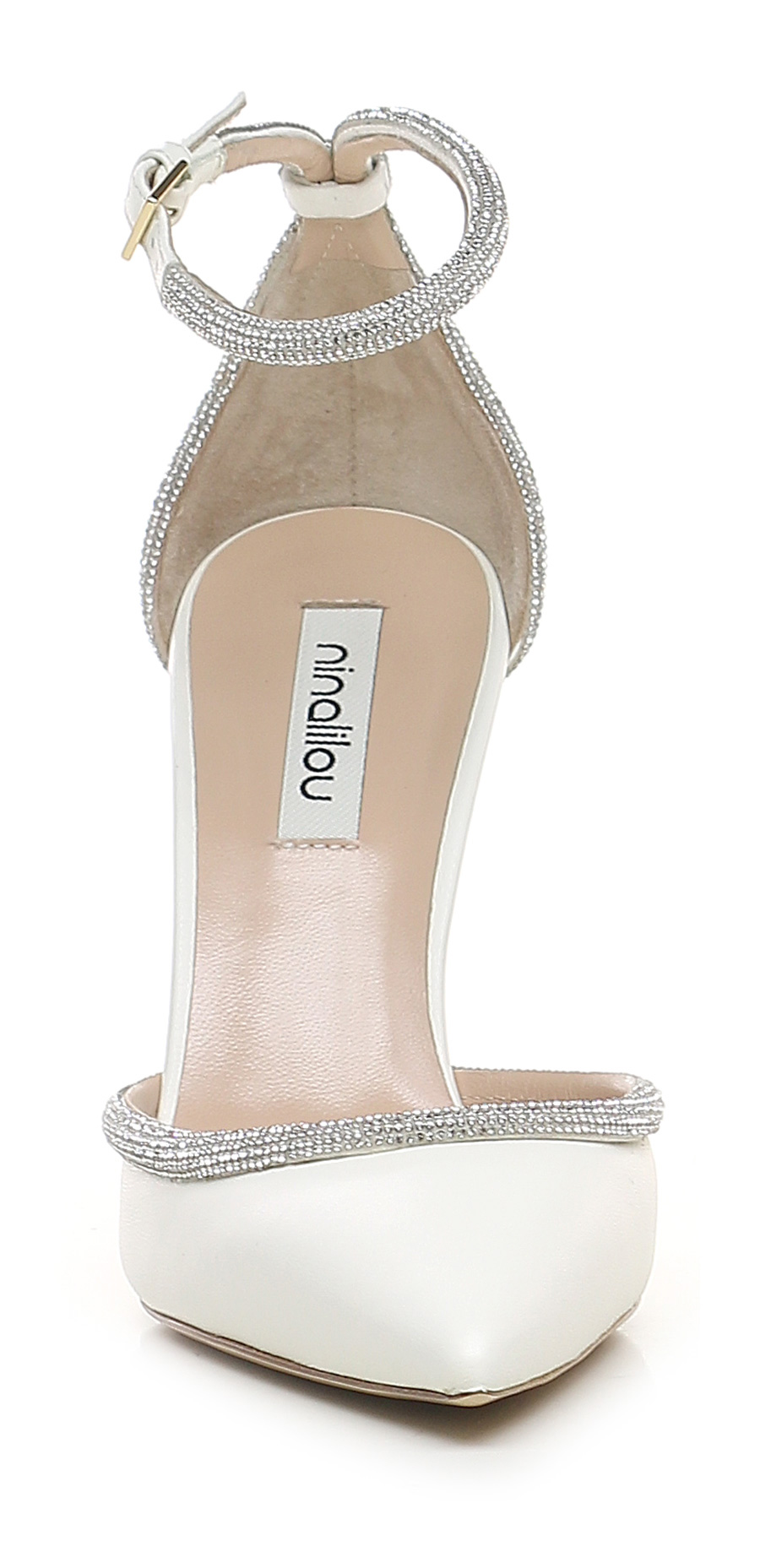 Leather and rhinestone shoe with ankle strap with rhinestones. Leather sole. Heel height 100mm.