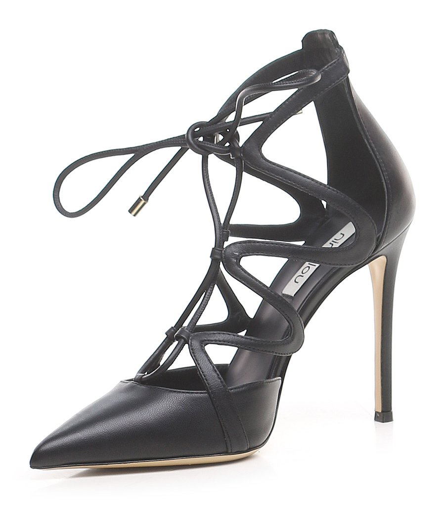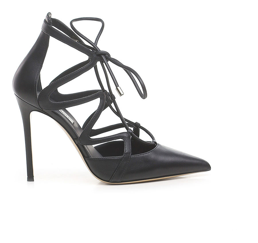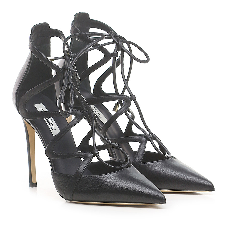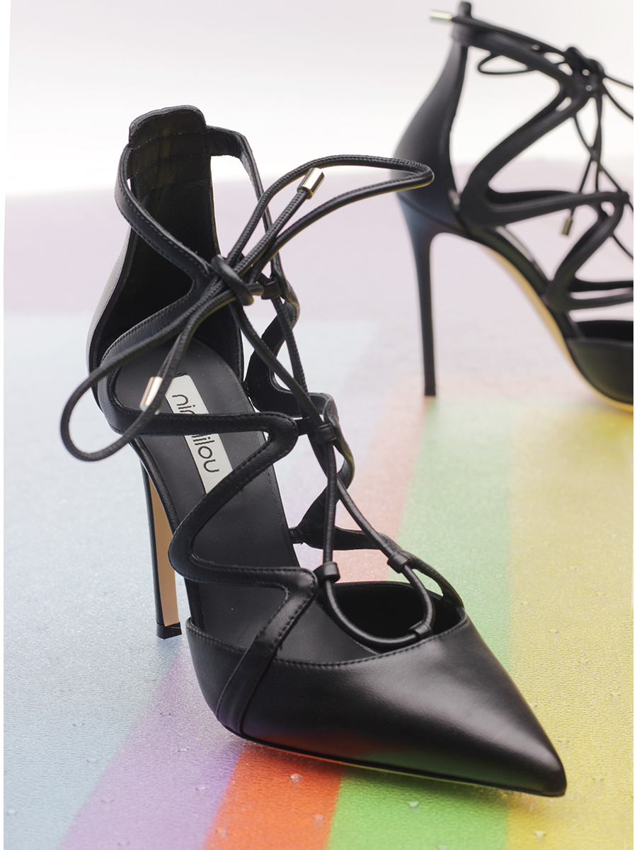Leather shoe with front lace and leather sole. Heel height 105mm.