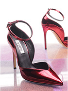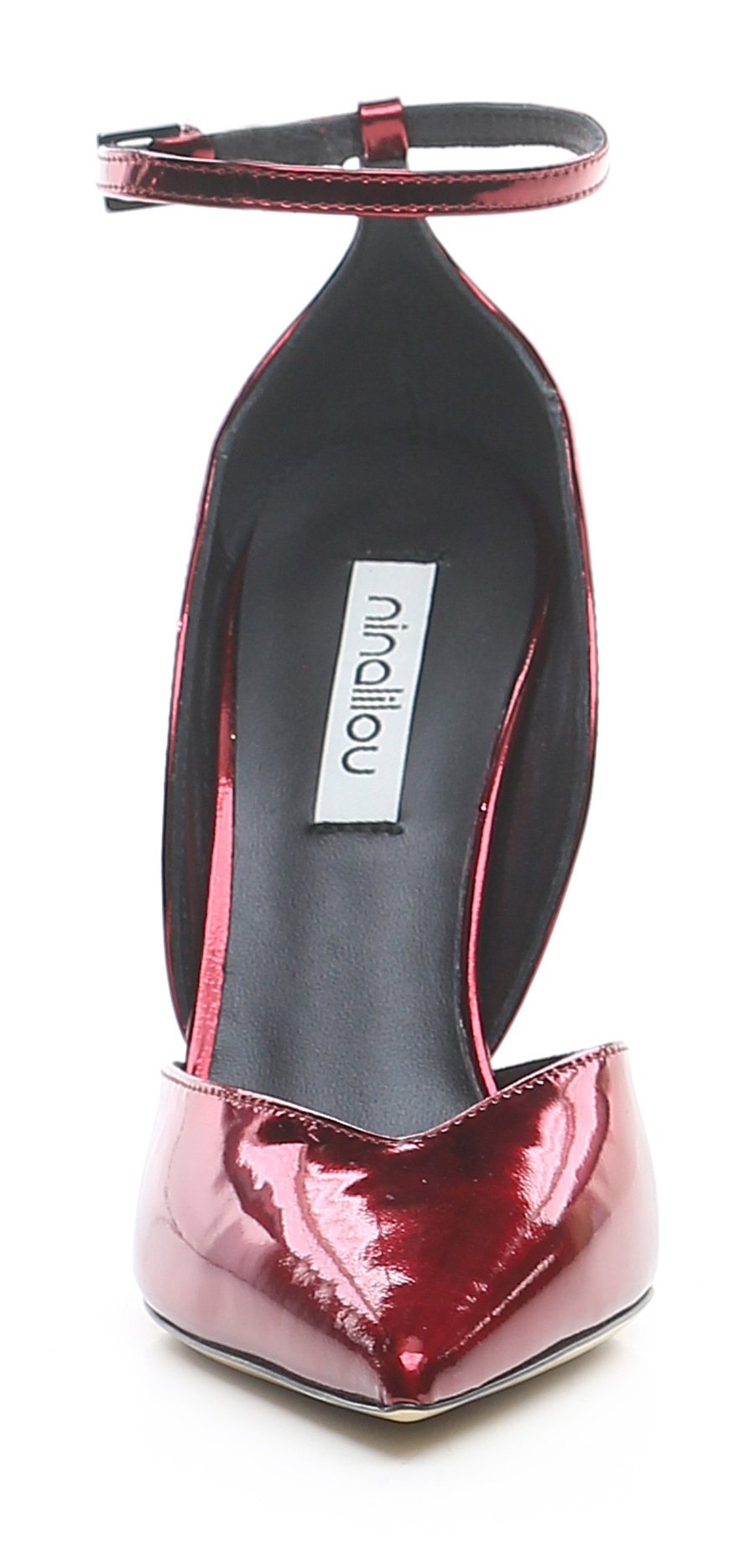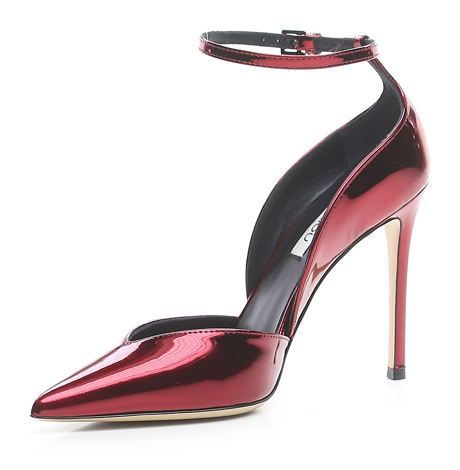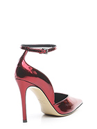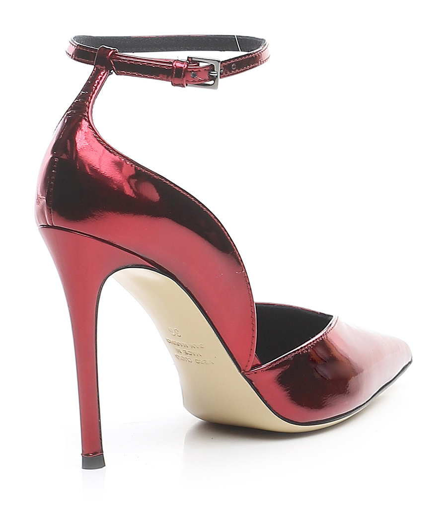 Mirrored leather shoe with ankle strap and leather sole. Heel height 100mm.