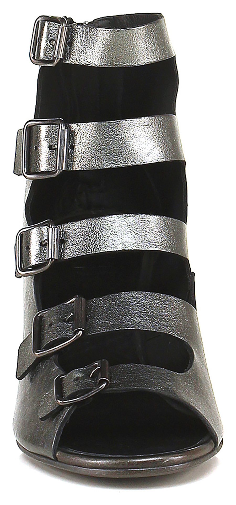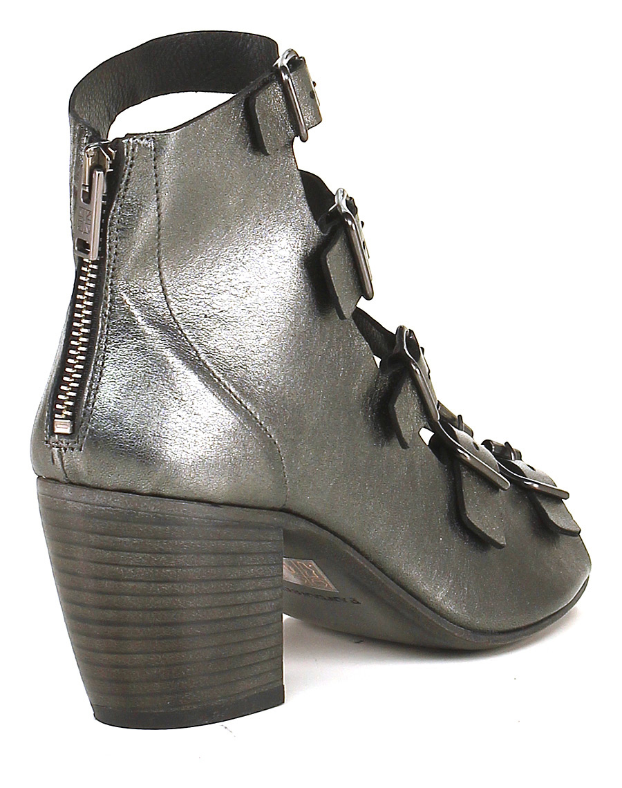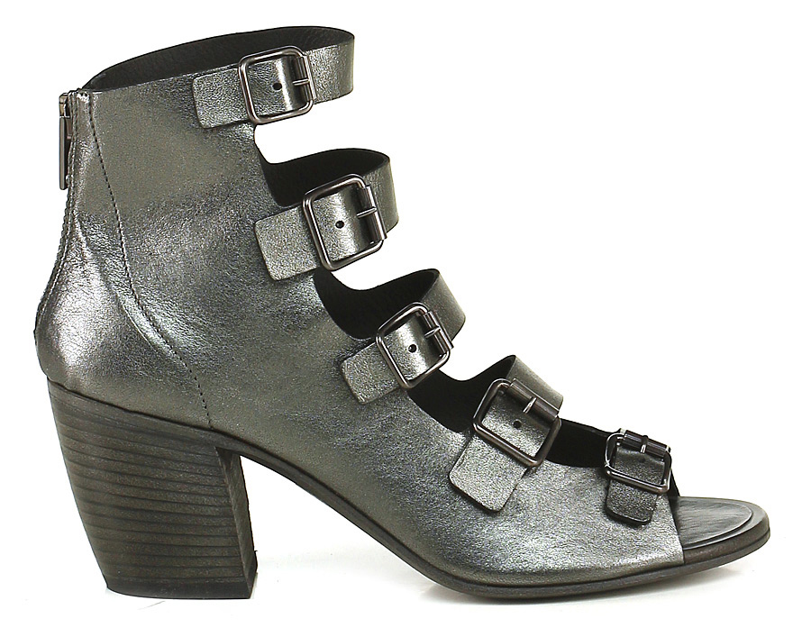 Heeled shoe in vintage laminated leather with zip on the back and leather sole. Heel 70.