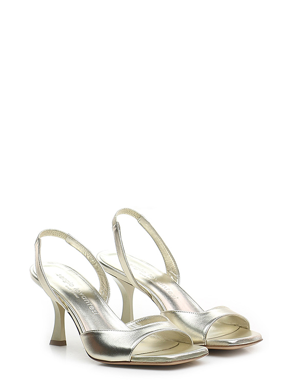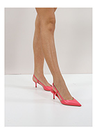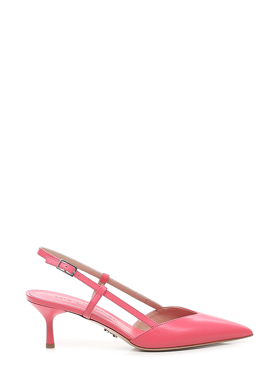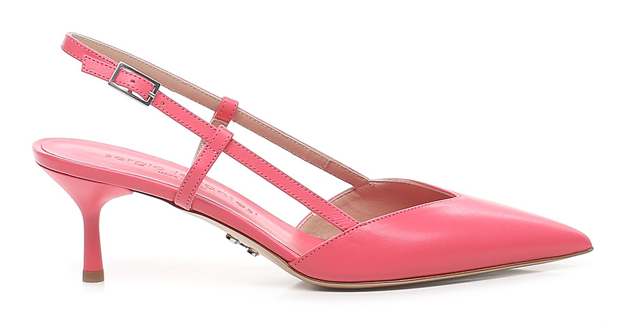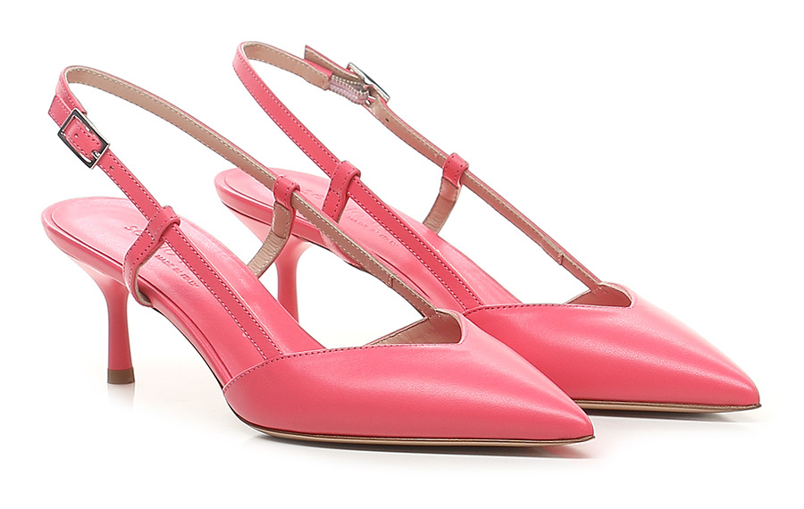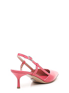 Leather shoe with retro strap and leather sole. Heel covered in matt varnish, height 70 mm.