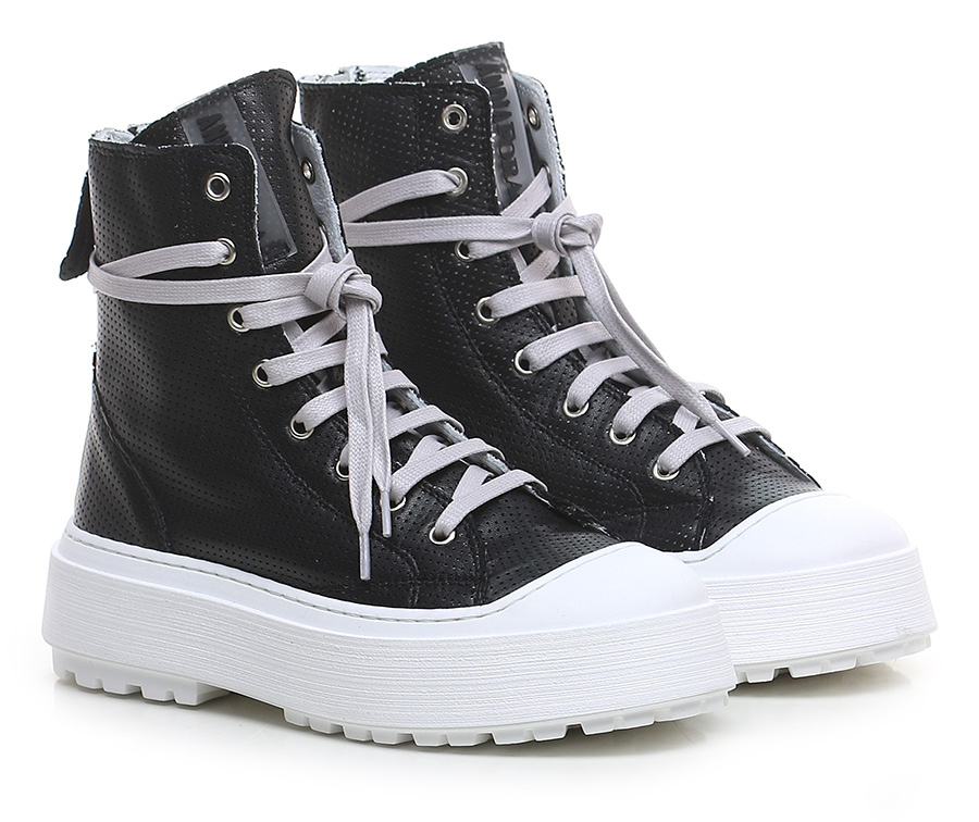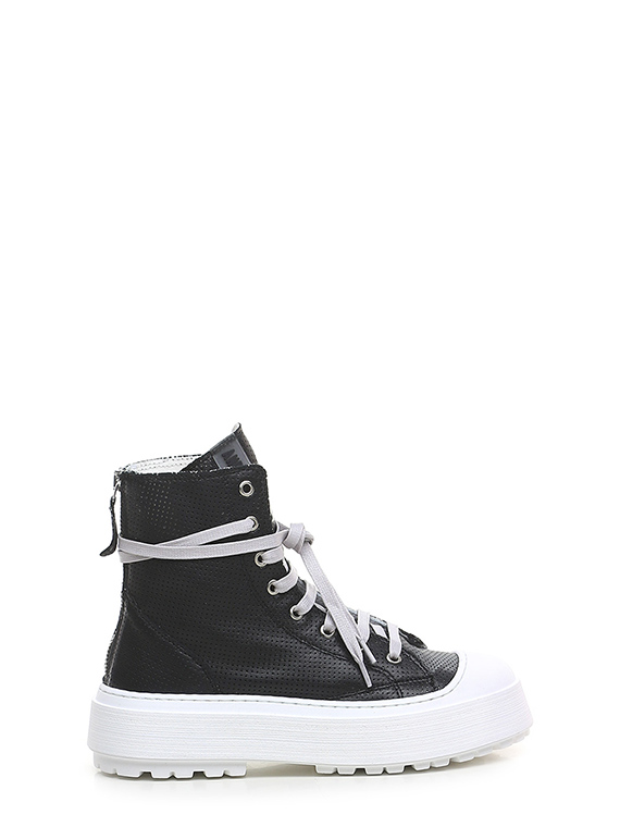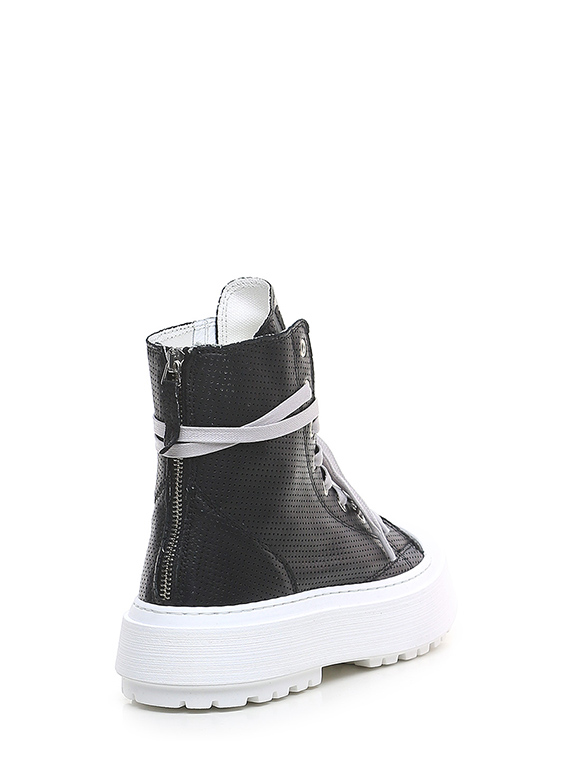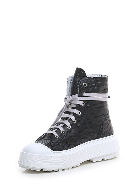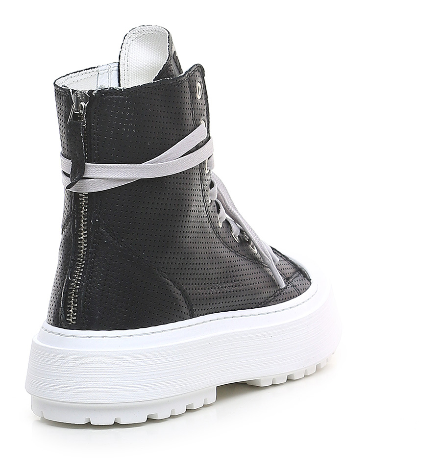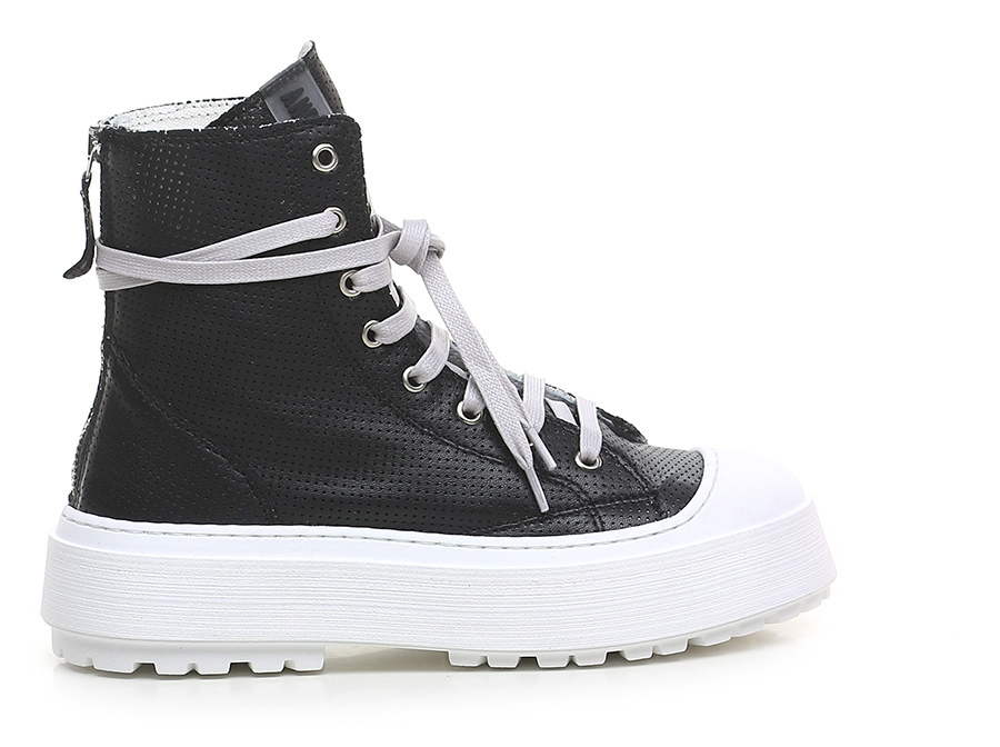 Ankle boot in perforated leather with zip on the back. Rubber sole. 50mm heel height, 40mm platform with 10mm ledge.
