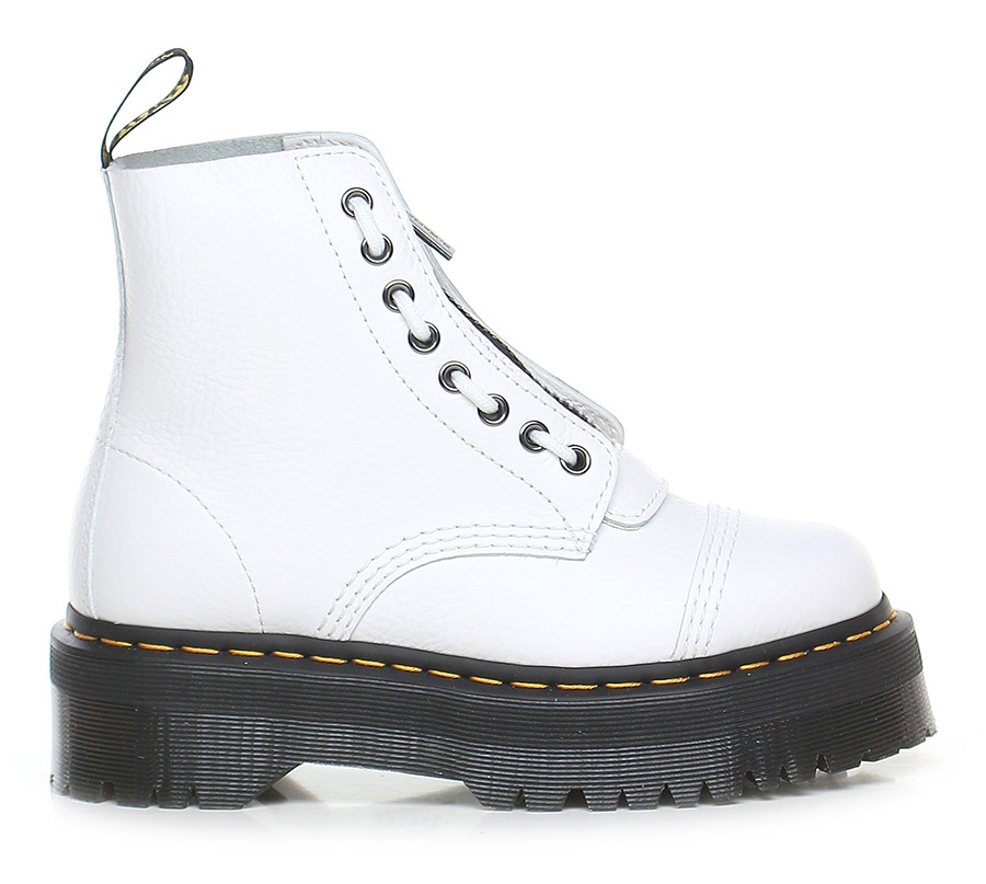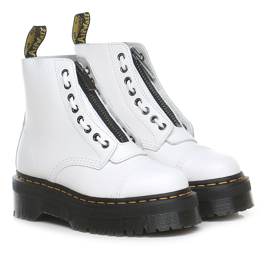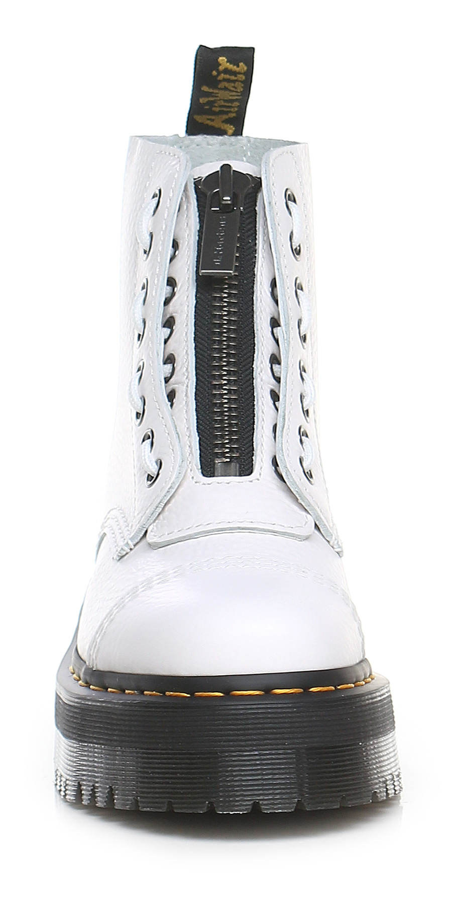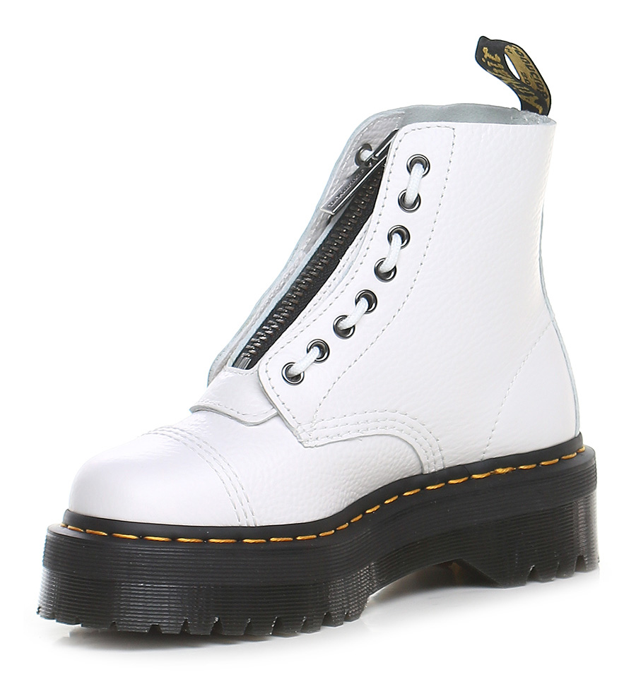 Ankle boot in textured leather with front zip. Oversized rubber sole. 50mm heel height, 40mm platform with 10mm ledge.