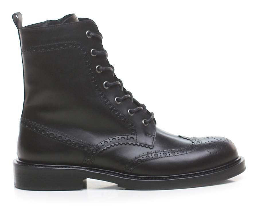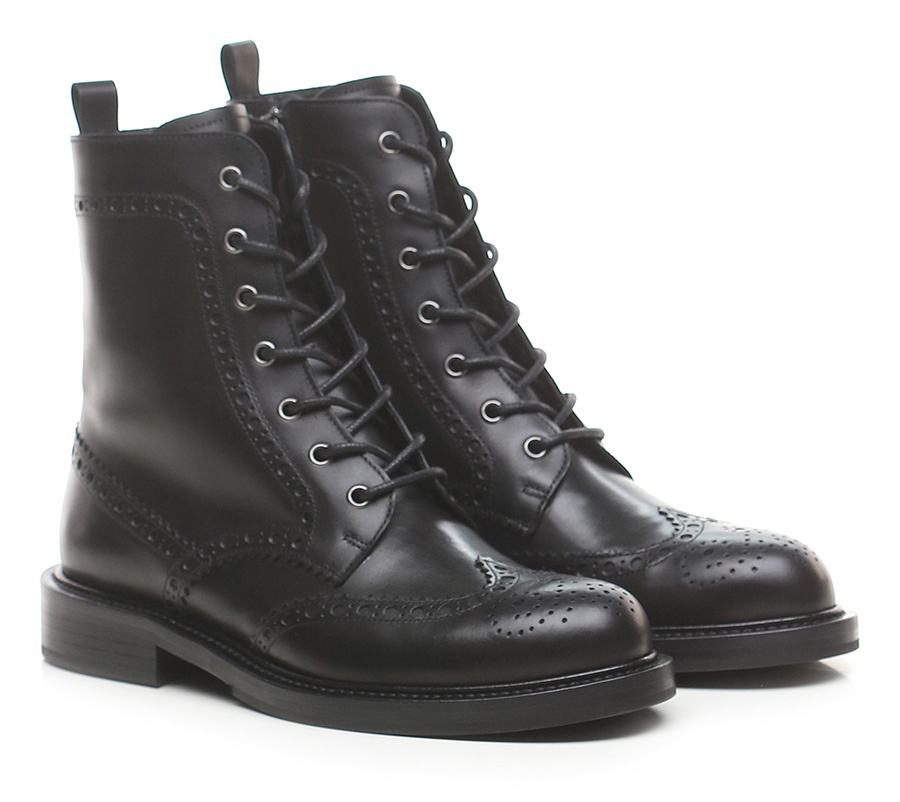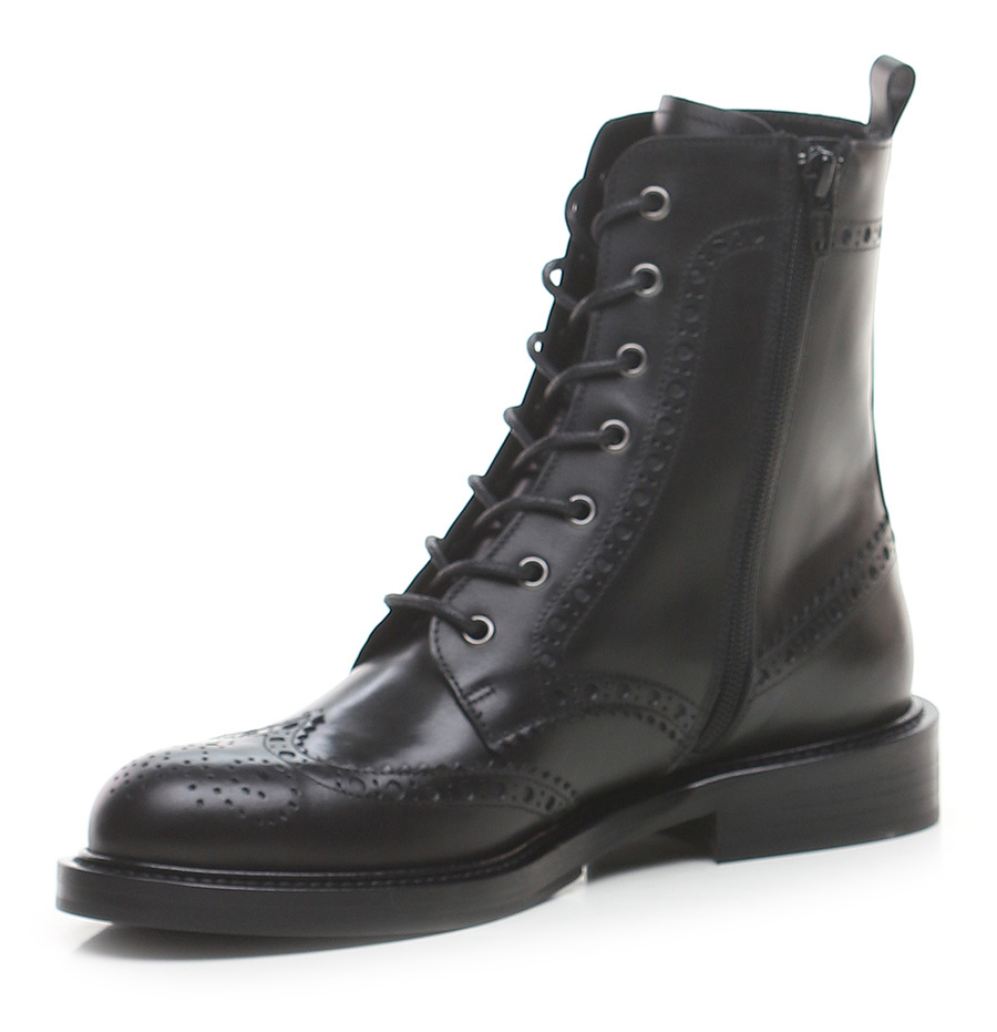 Leather ankle boot with side zip and leather and rubber sole. Heel height 30mm.