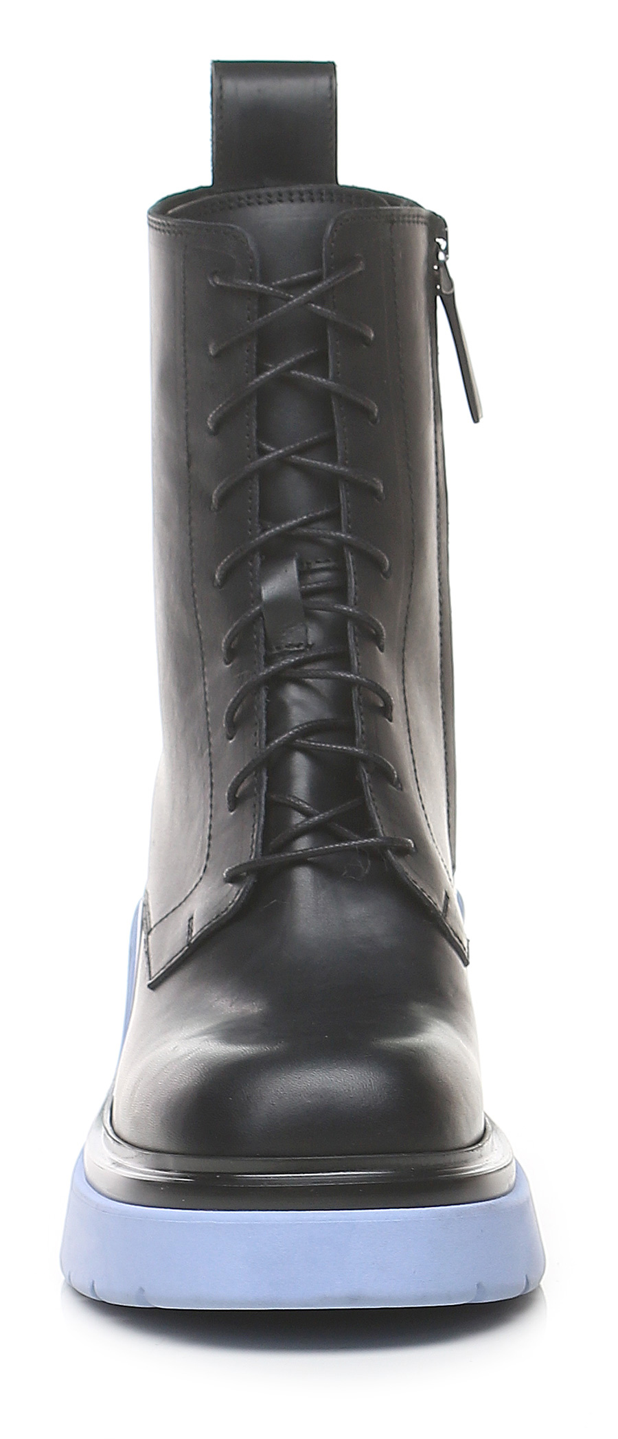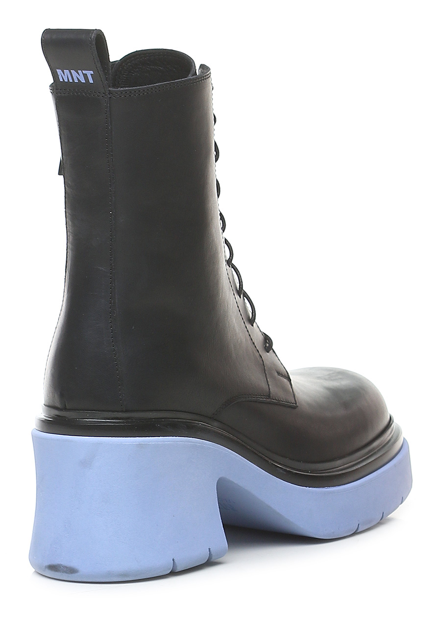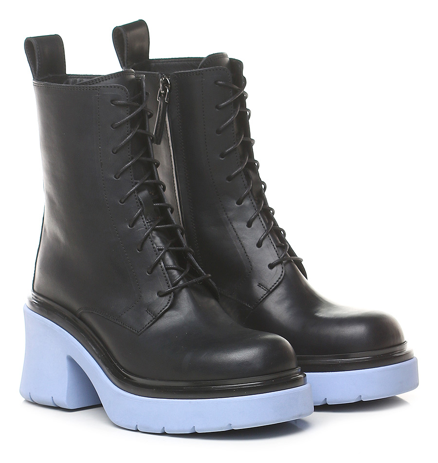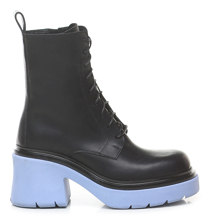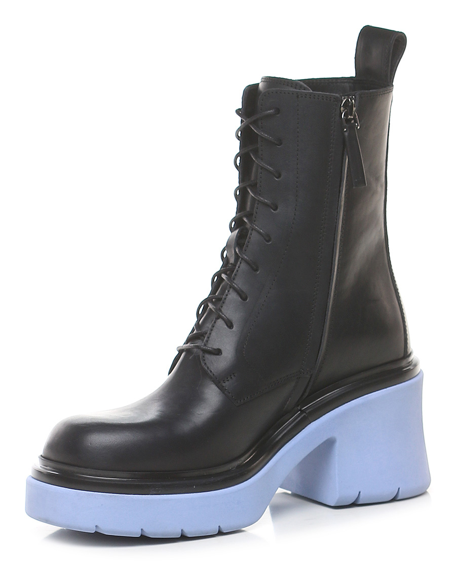 Leather ankle boot with side zip. Vintage effect rubber sole. 80mm heel height, 35mm platform with 45mm ledge.