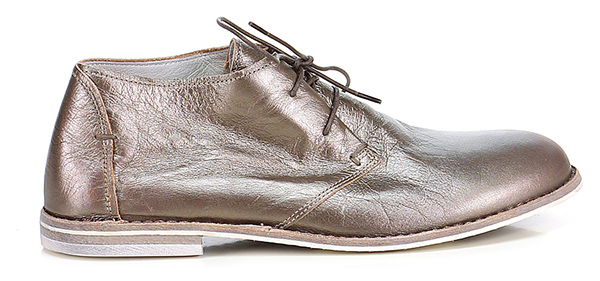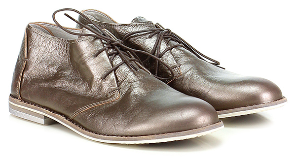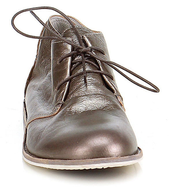 Vintage laminated leather ankle boot with rubber sole. Heel 15.