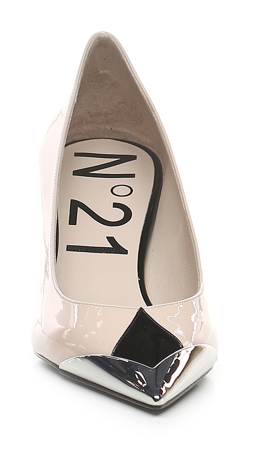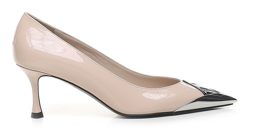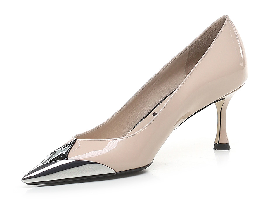 Patent leather shoe with steel toe cap and leather sole. Heel height 65mm.