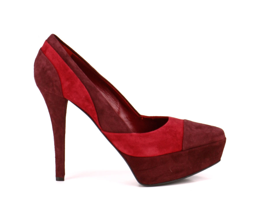Decollete in suede with leather and rubber sole. 130 heel, 35 platform with 95 ledge.
