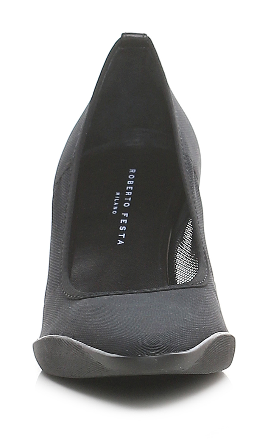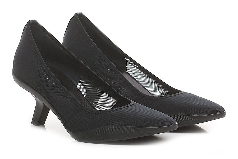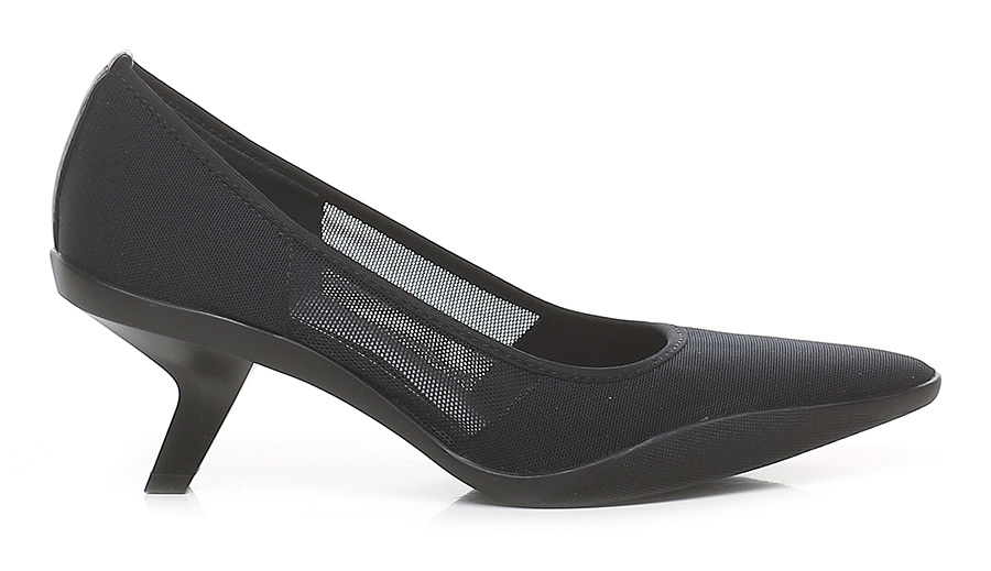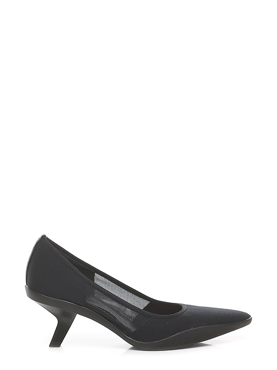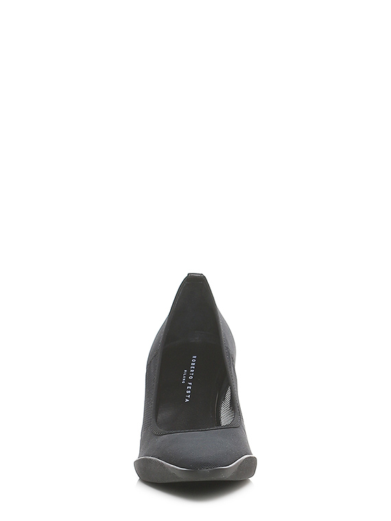 Shoe in fabric and stretch fabric with rubber sole. Heel height 60mm. Matt effect pvc heel.