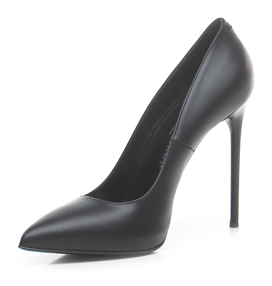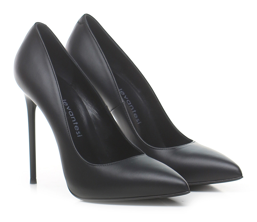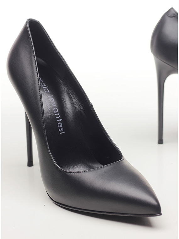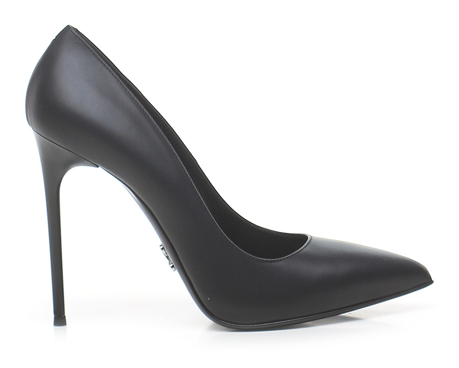 Leather décolleté with leather and rubber sole. Heel height 115mm. Matt effect pvc heel.