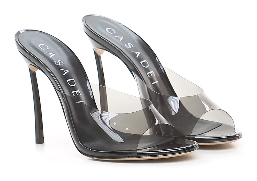 Pvc sandal with leather sole. Heel height 115mm. Blade heel.