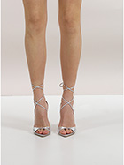 Sandal in laminated leather with ankle strap and leather sole. Heel height 105mm.