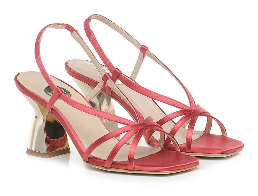 High sandal in satin fabric with leather sole. Avasado 85 heel, metal effect