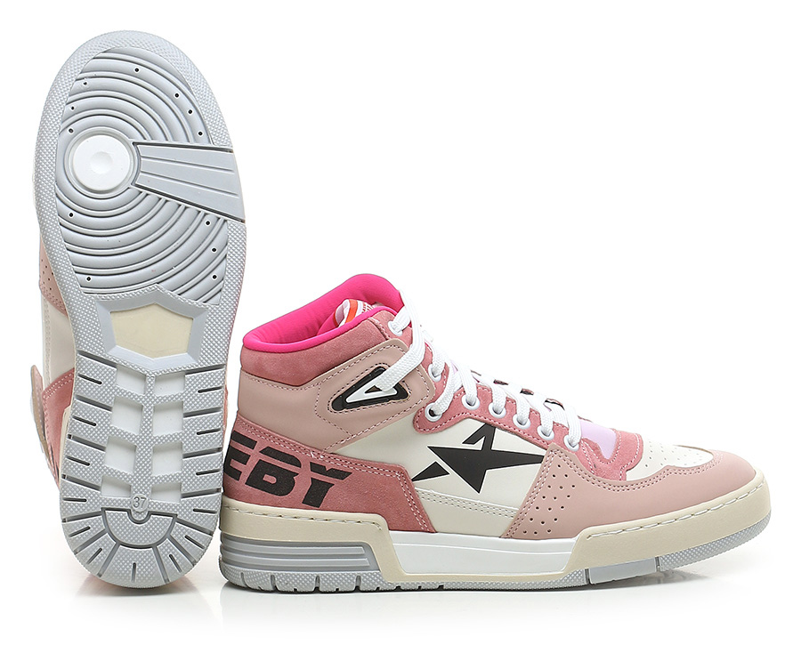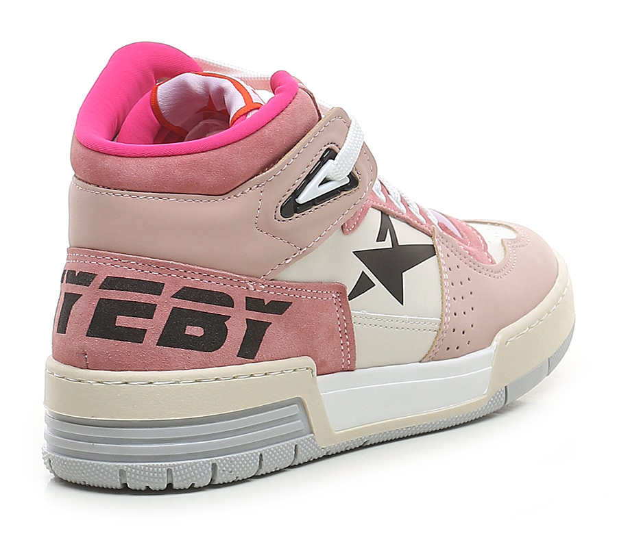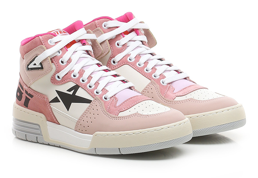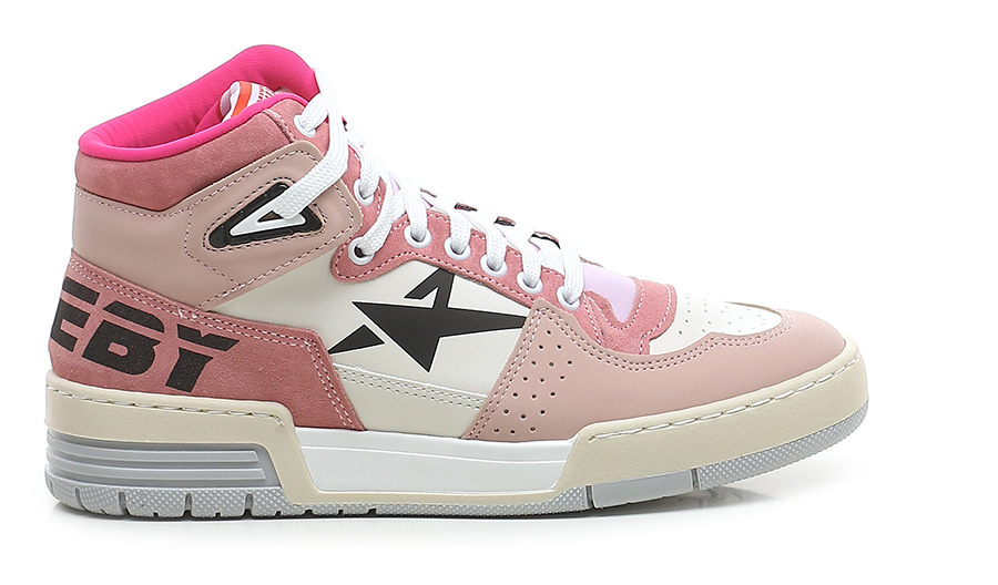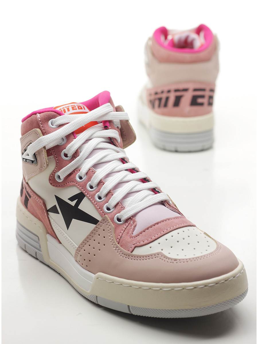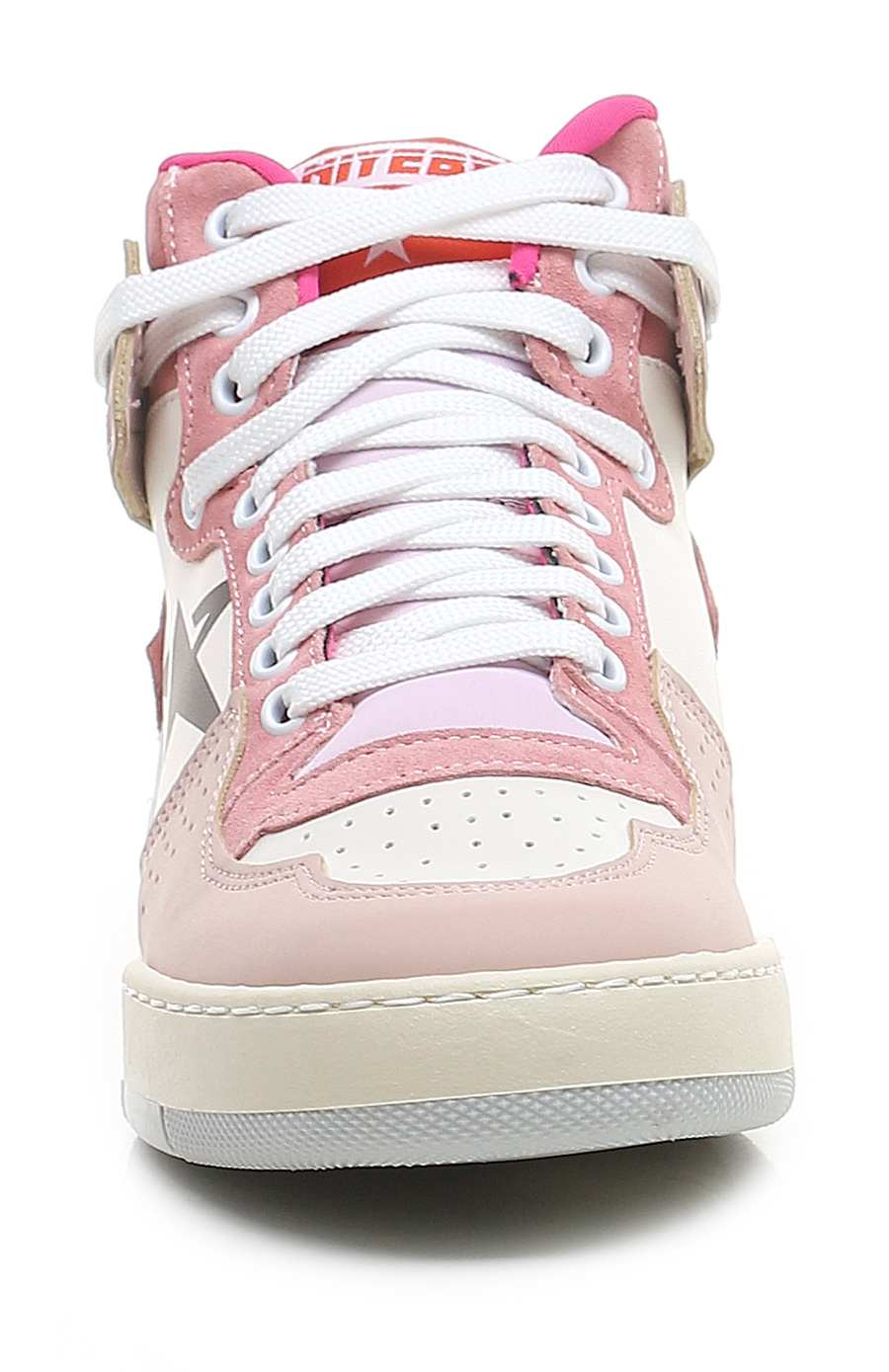 Faux leather and suede sneaker with rubber sole. 40mm heel height, 25mm platform with 15mm ledge.