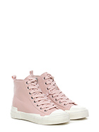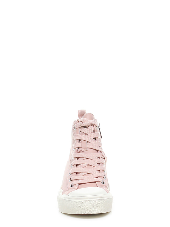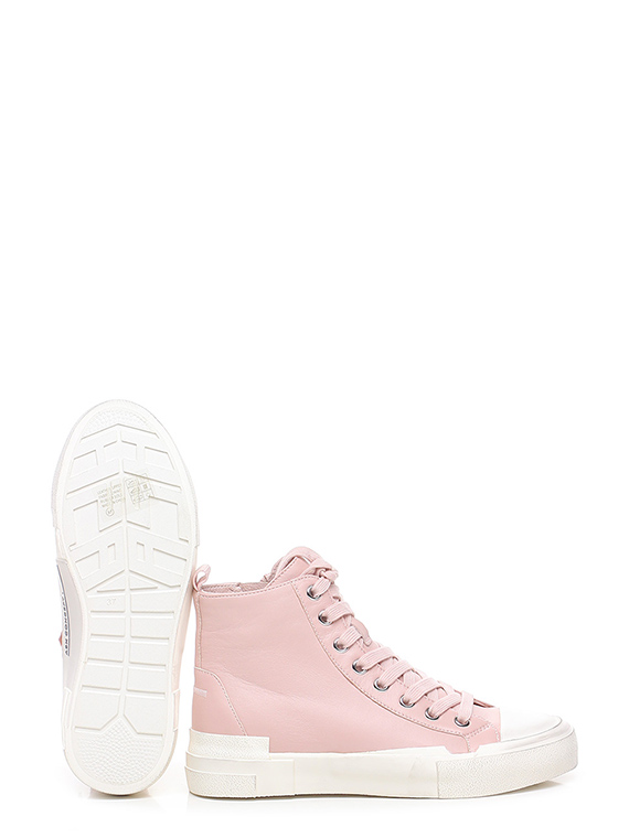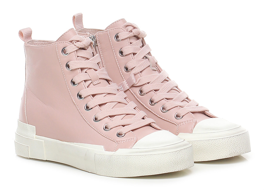 Leather sneaker with internal side zip, worn effect rubber sole. Sole height: 30, platform 30.