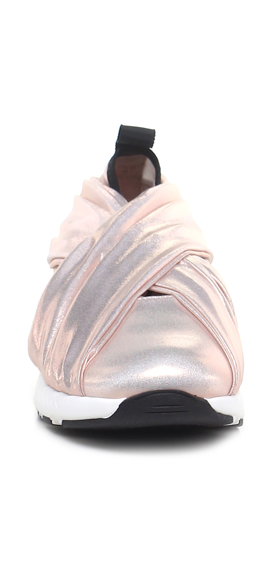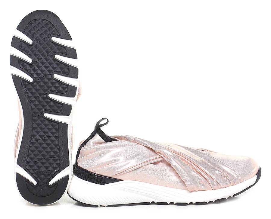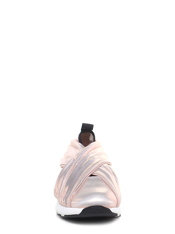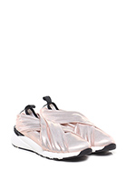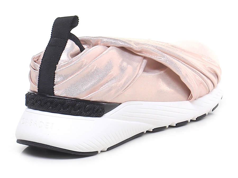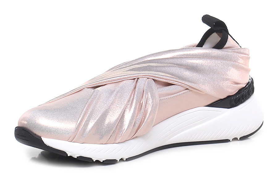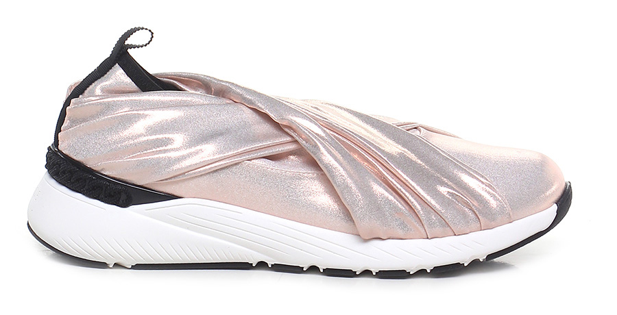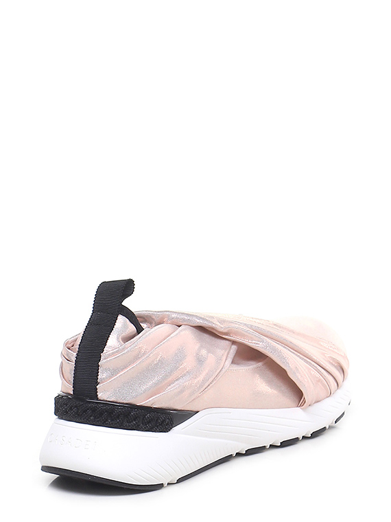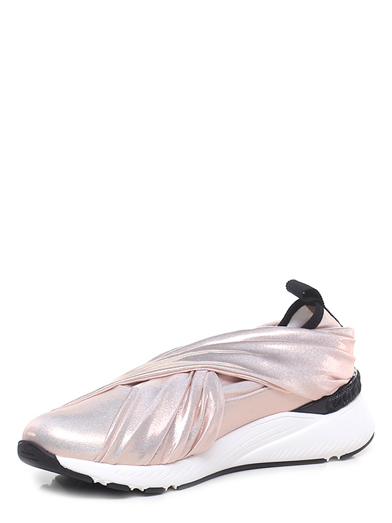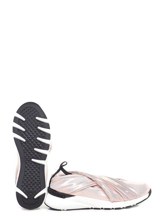 Sneaker in laminated satin fabric and rubber sole. Heel 55, platform 20 with ledge 35.