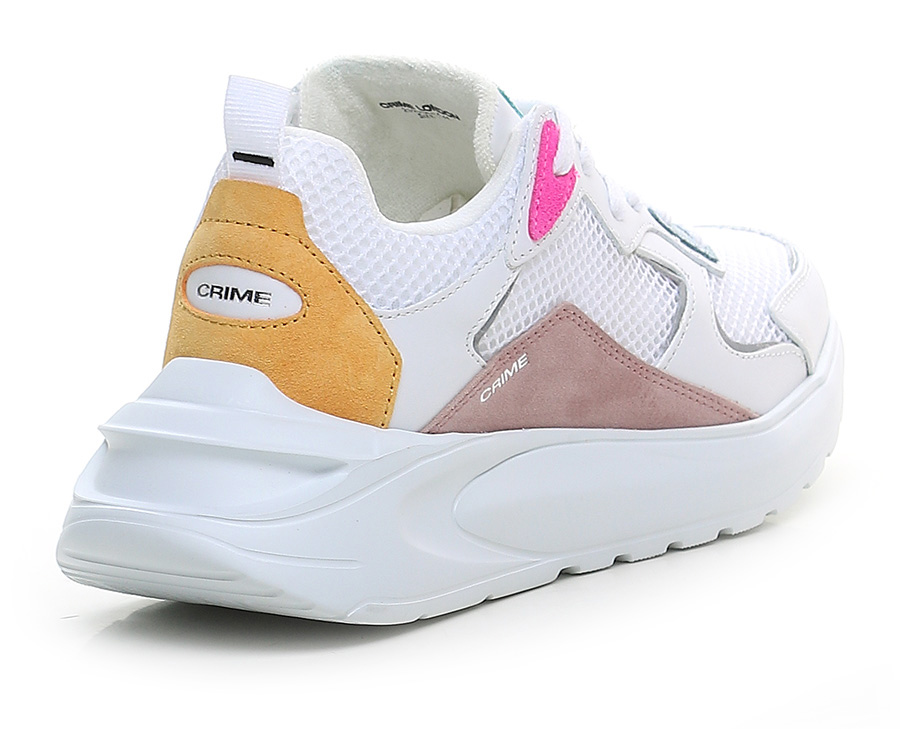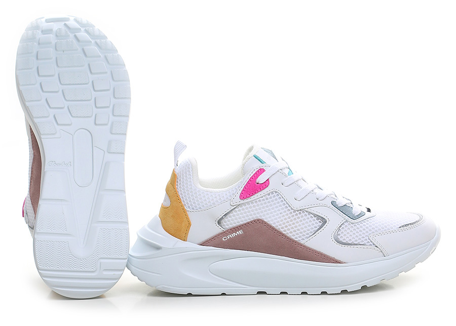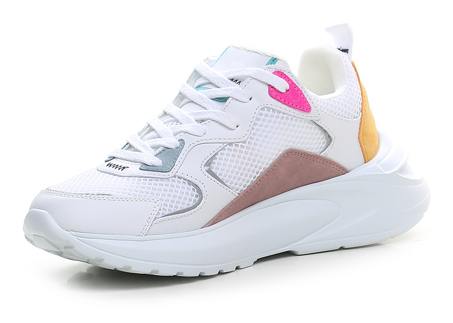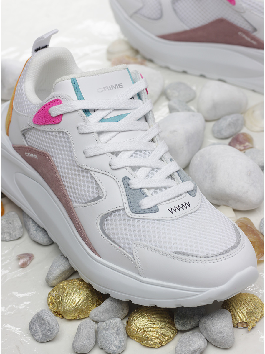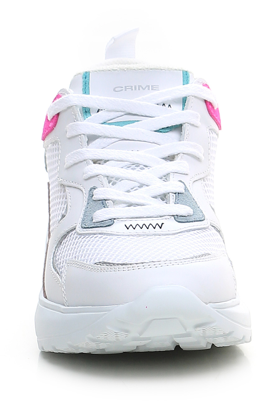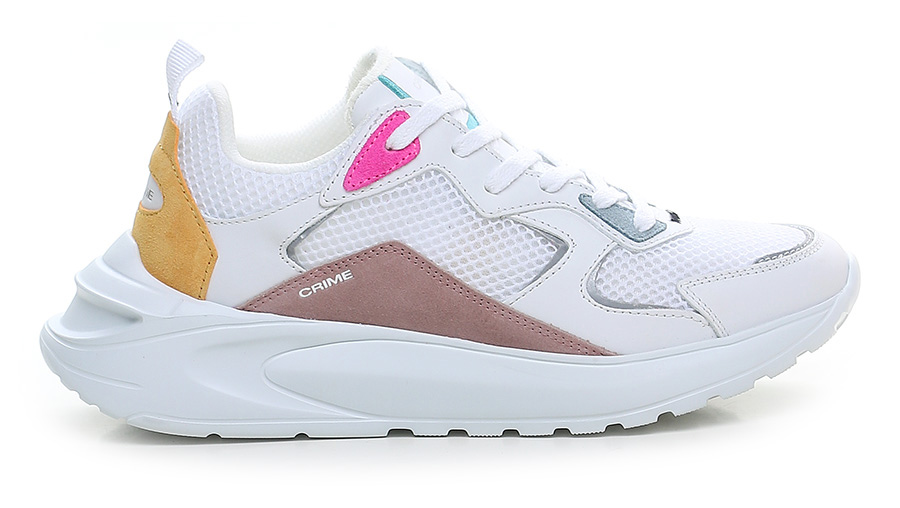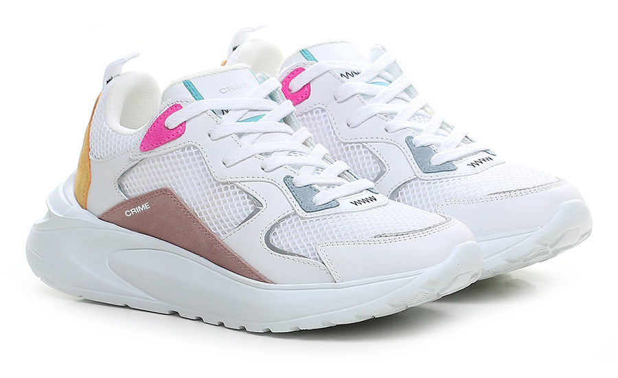 Sneaker in fabric, leather and suede with rubber sole. Heel height 45mm, platform 30mm with 15mm ledge.