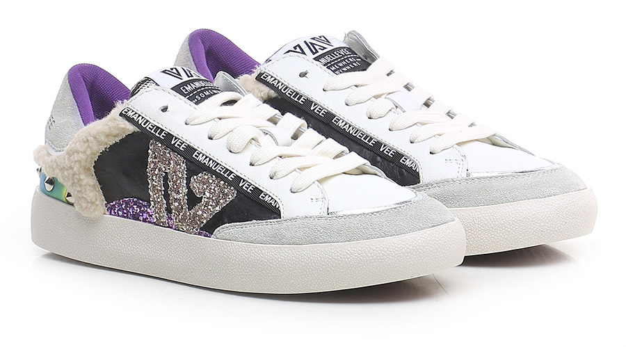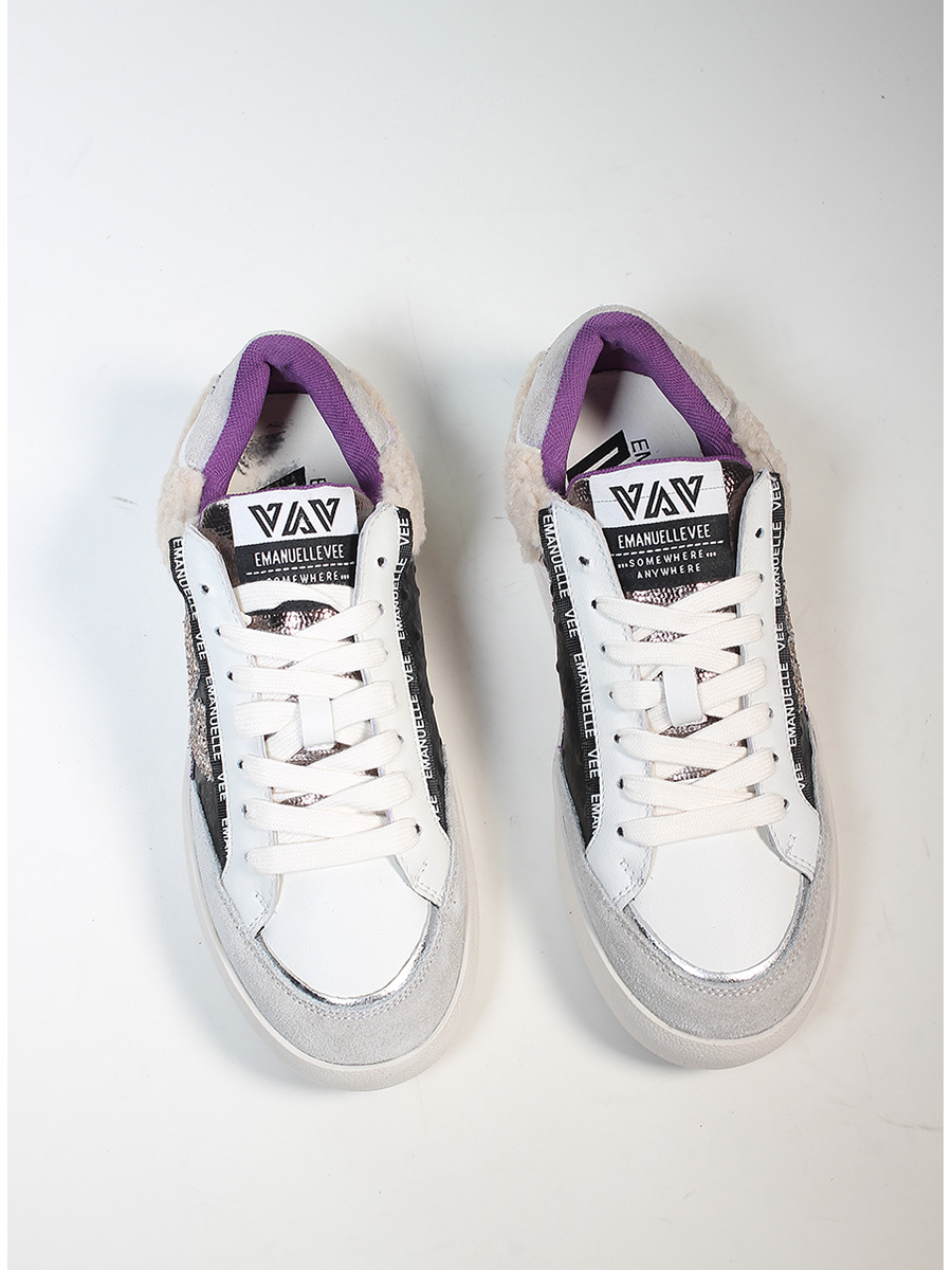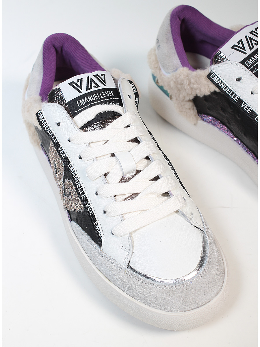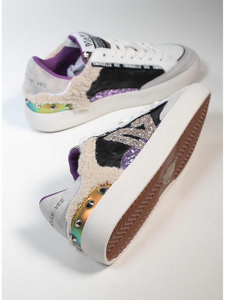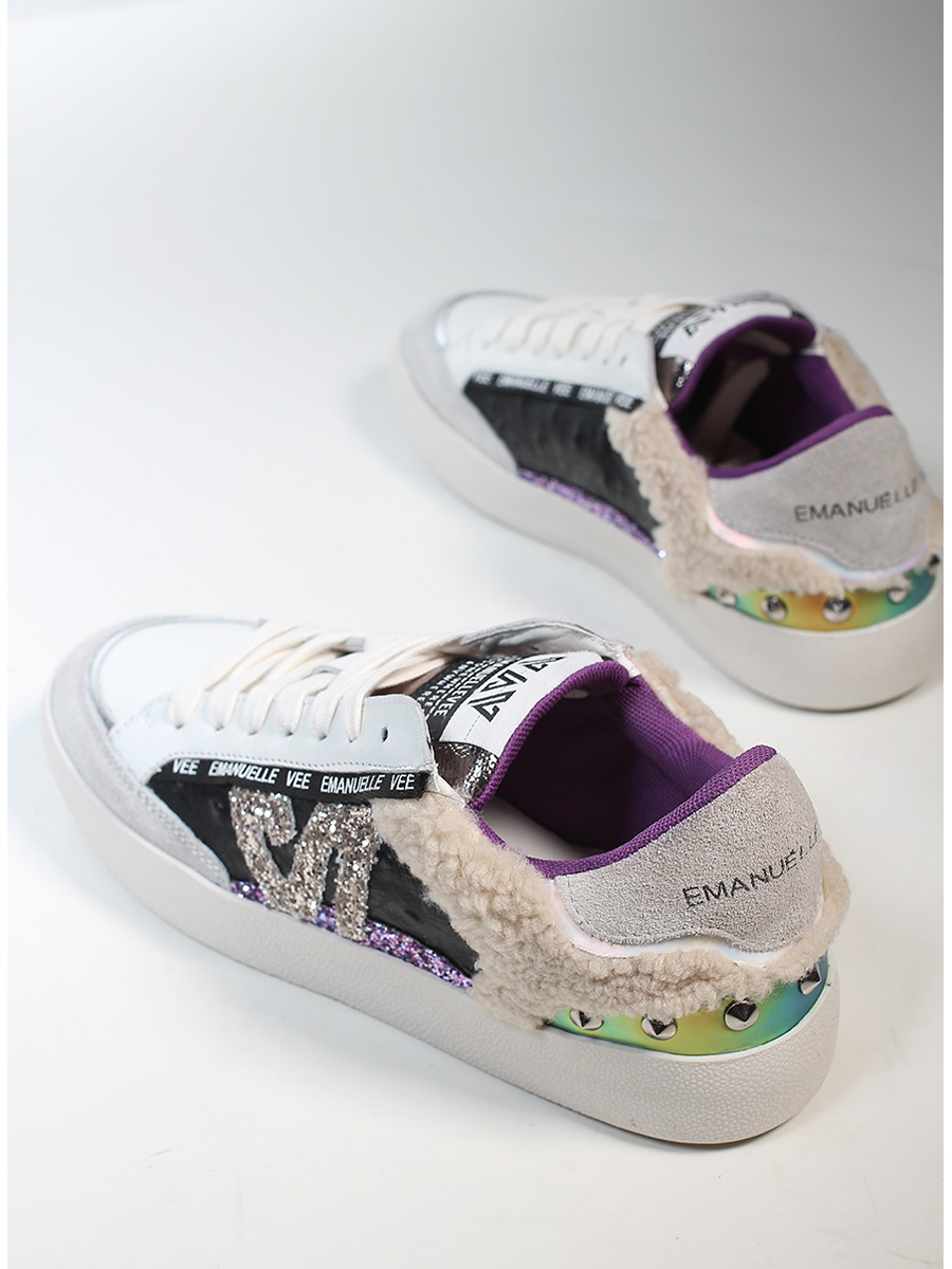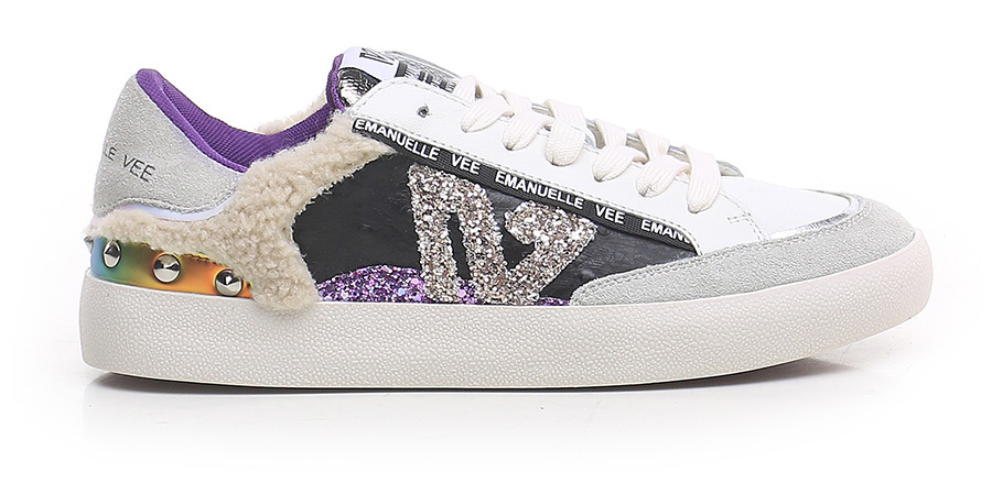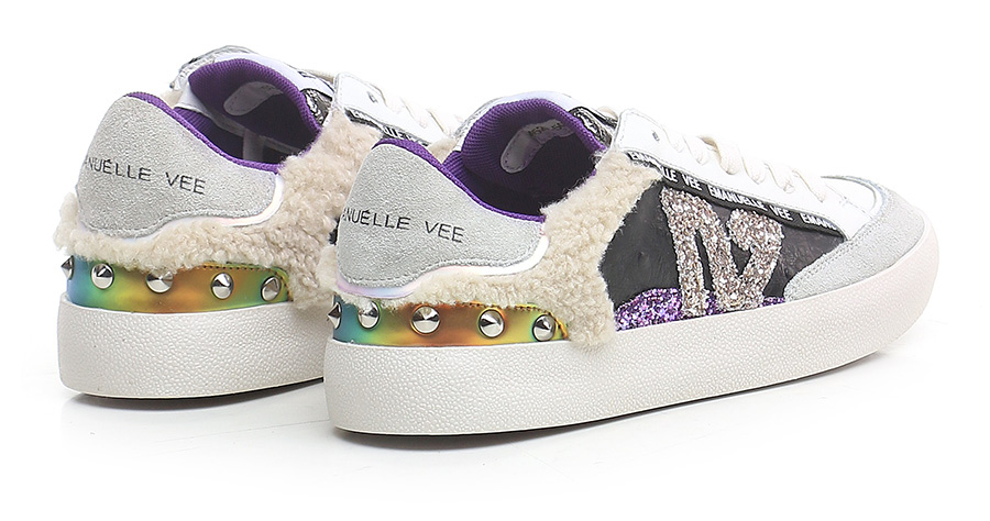 : Tissue details, Suede details, Laminated details, Logo, Studs