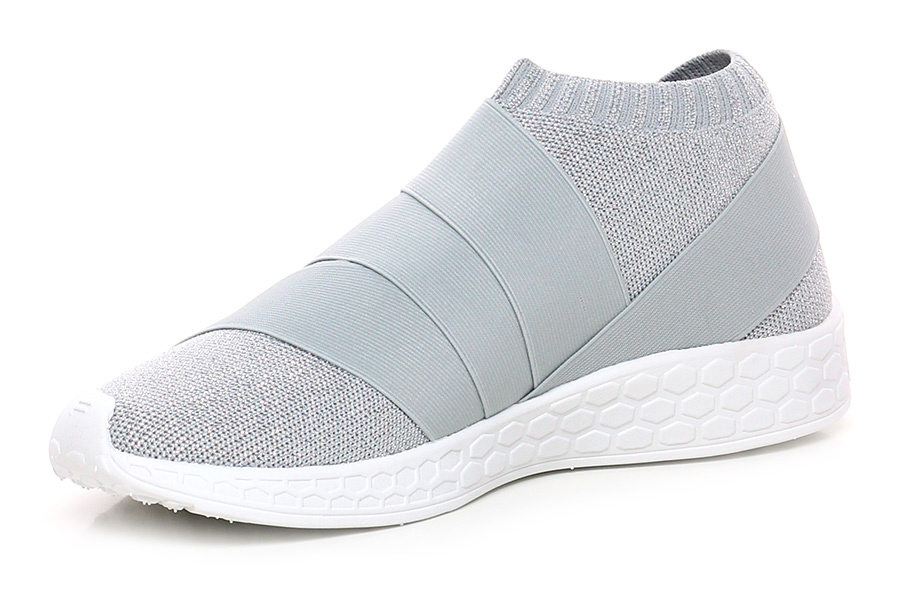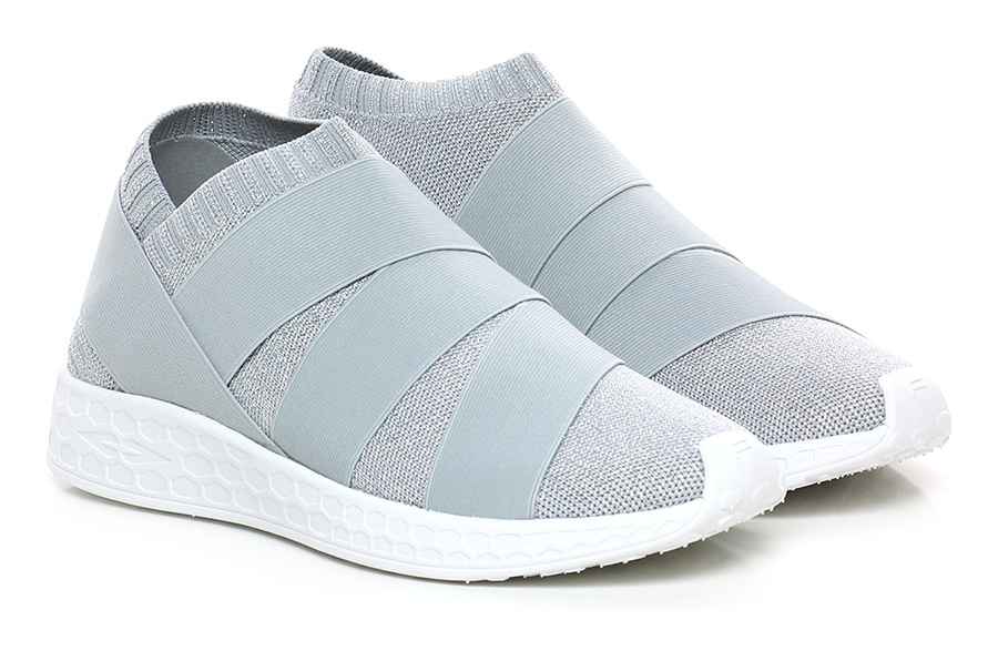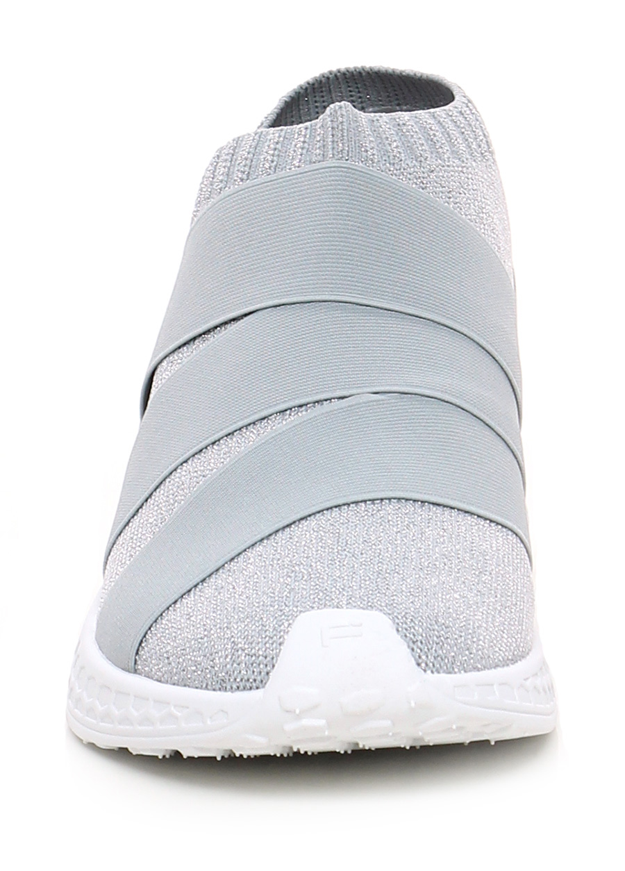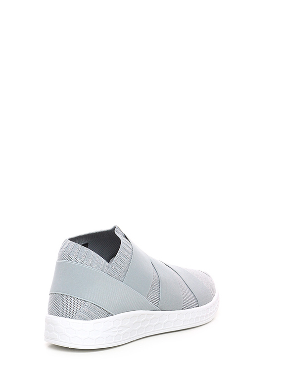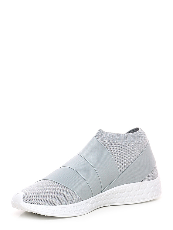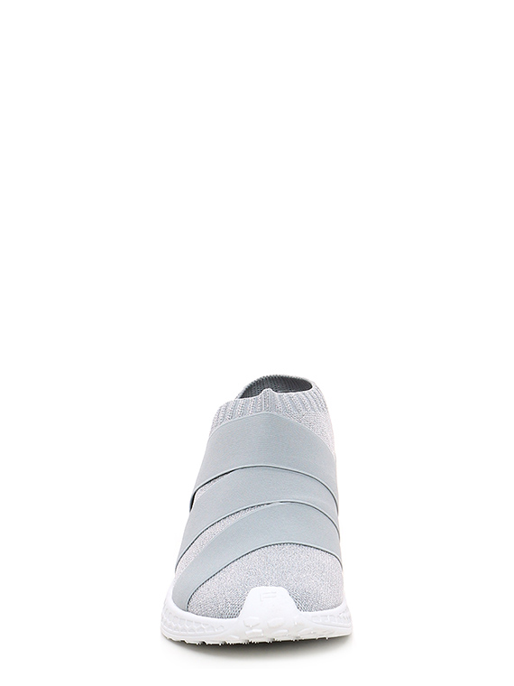 Sneaker in stretch fabric and lurex with front elastic band on the upper, light rubber sole. 30 heel, 20 platform with 10 bar.