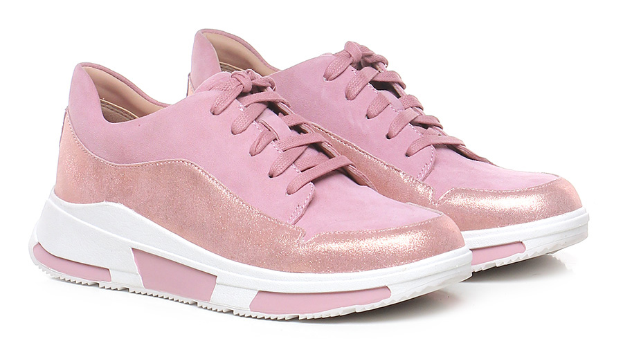 Sneaker in camoscio con inserti in pelle laminata, suola in gomma. Altezza suola: 45, platform 25 con battuta 20.
