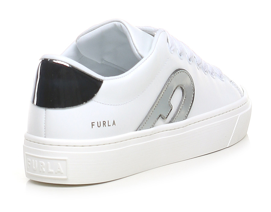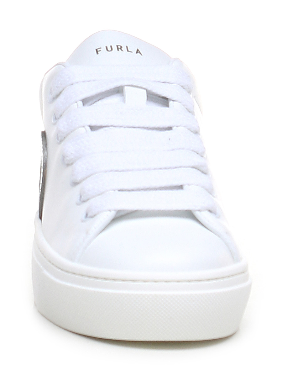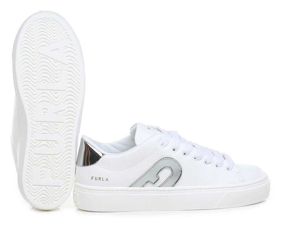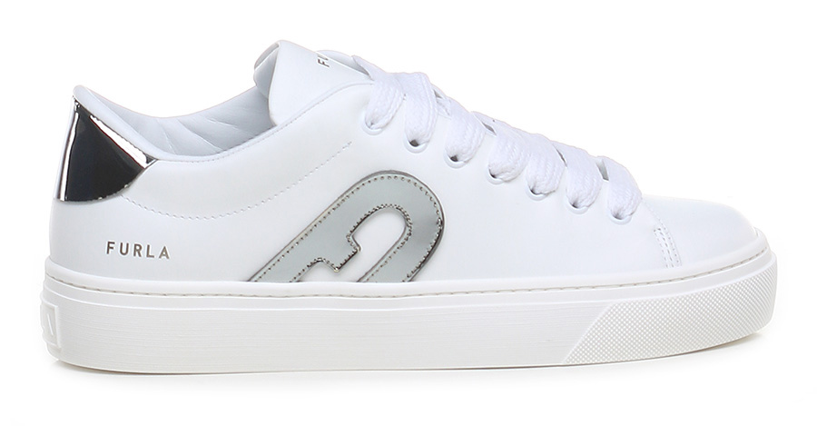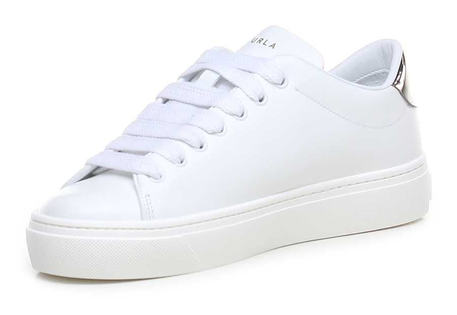 Leather sneaker with mirrored leather inserts and rubber sole. Sole height 30mm.