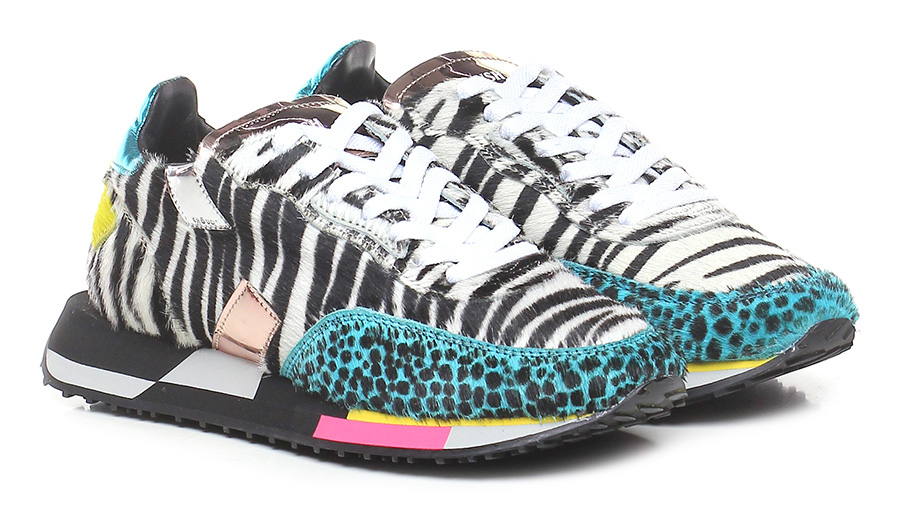 Sneaker cavallino stampato animalier e pelle specchiata, suola in gomma. Altezza suola: 30, platform 20 con battuta 10.
