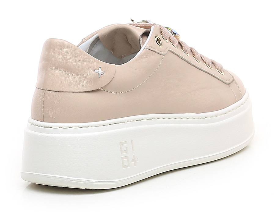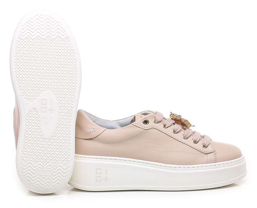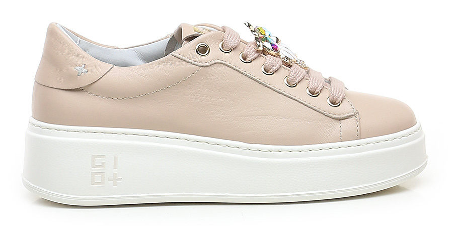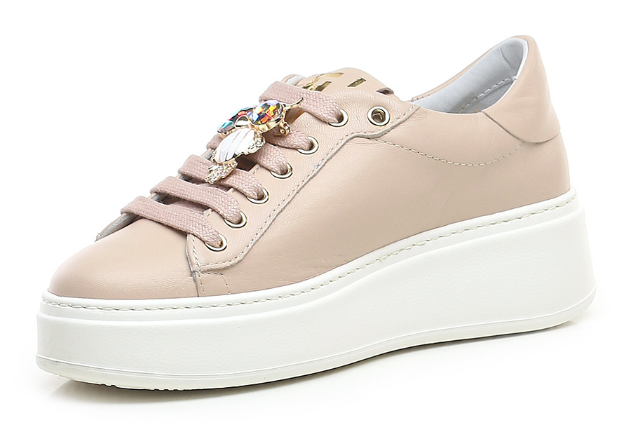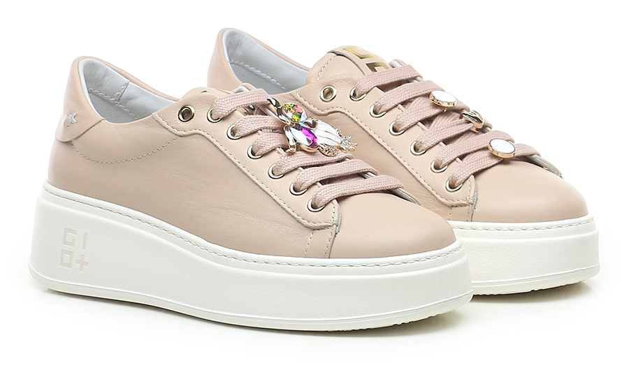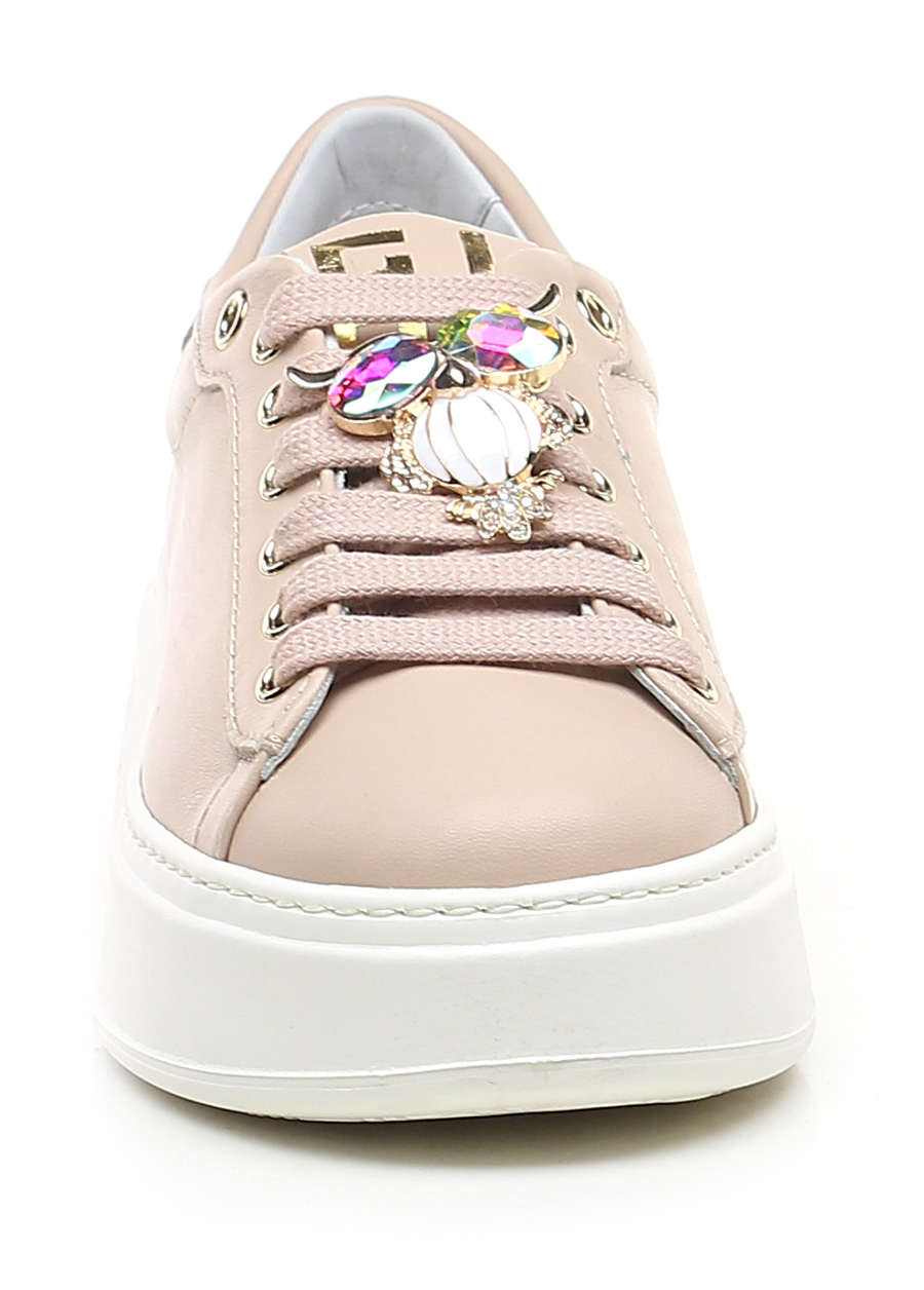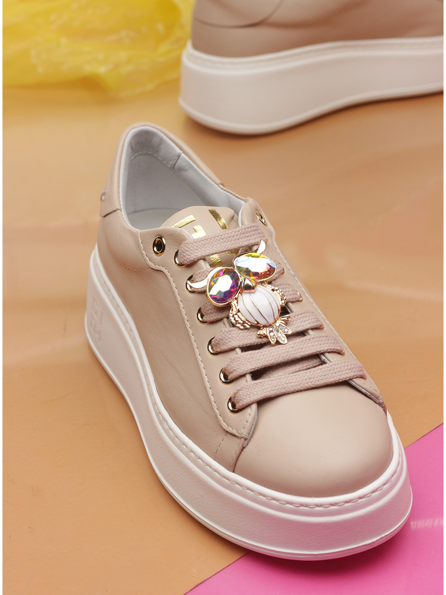 Leather sneaker with front accessory. Rubber sole. 50mm heel height, 35mm platform with 15mm ledge.