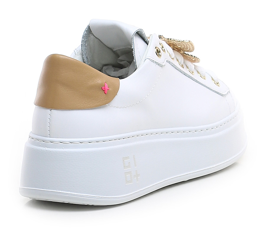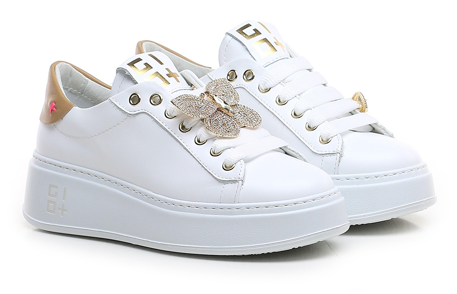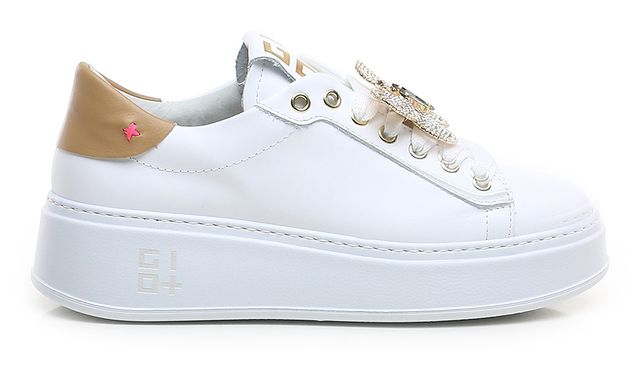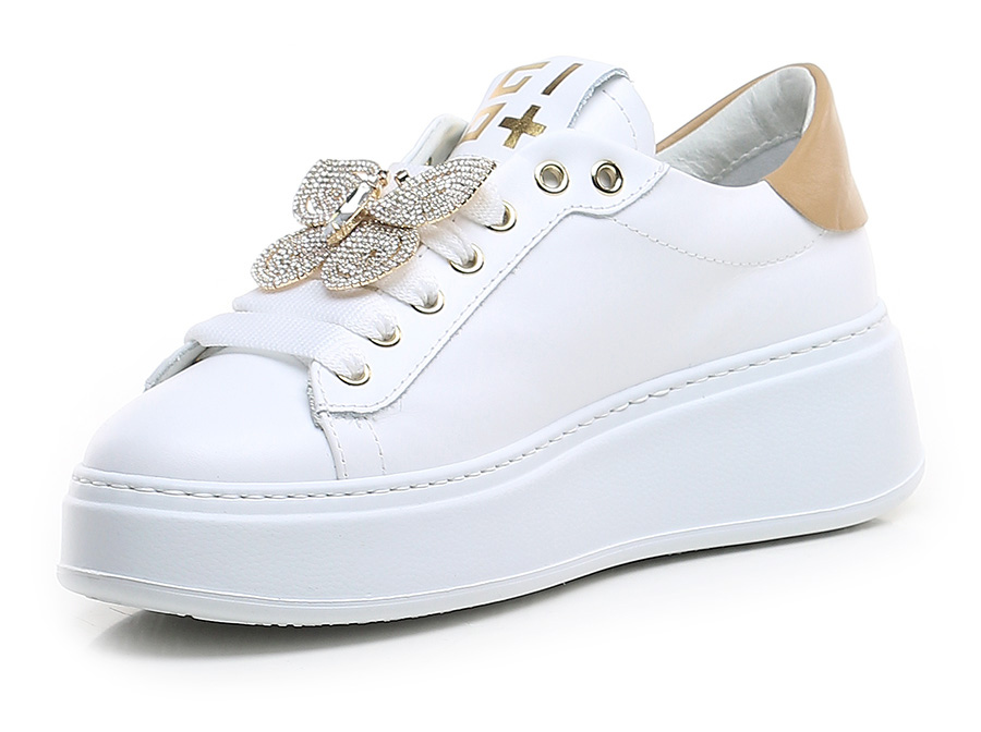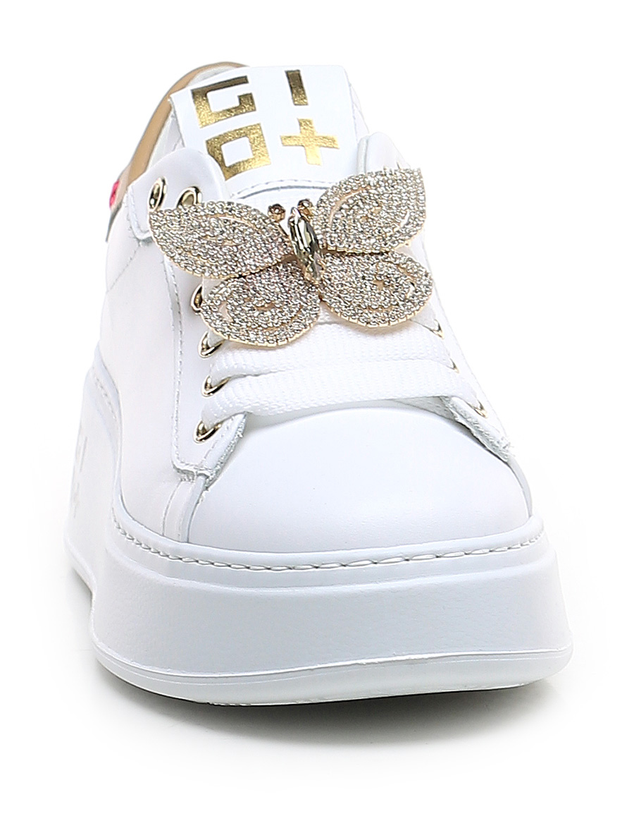 Leather sneaker with front accessories and rubber sole. 50mm heel height, 35mm platform with 15mm ledge.