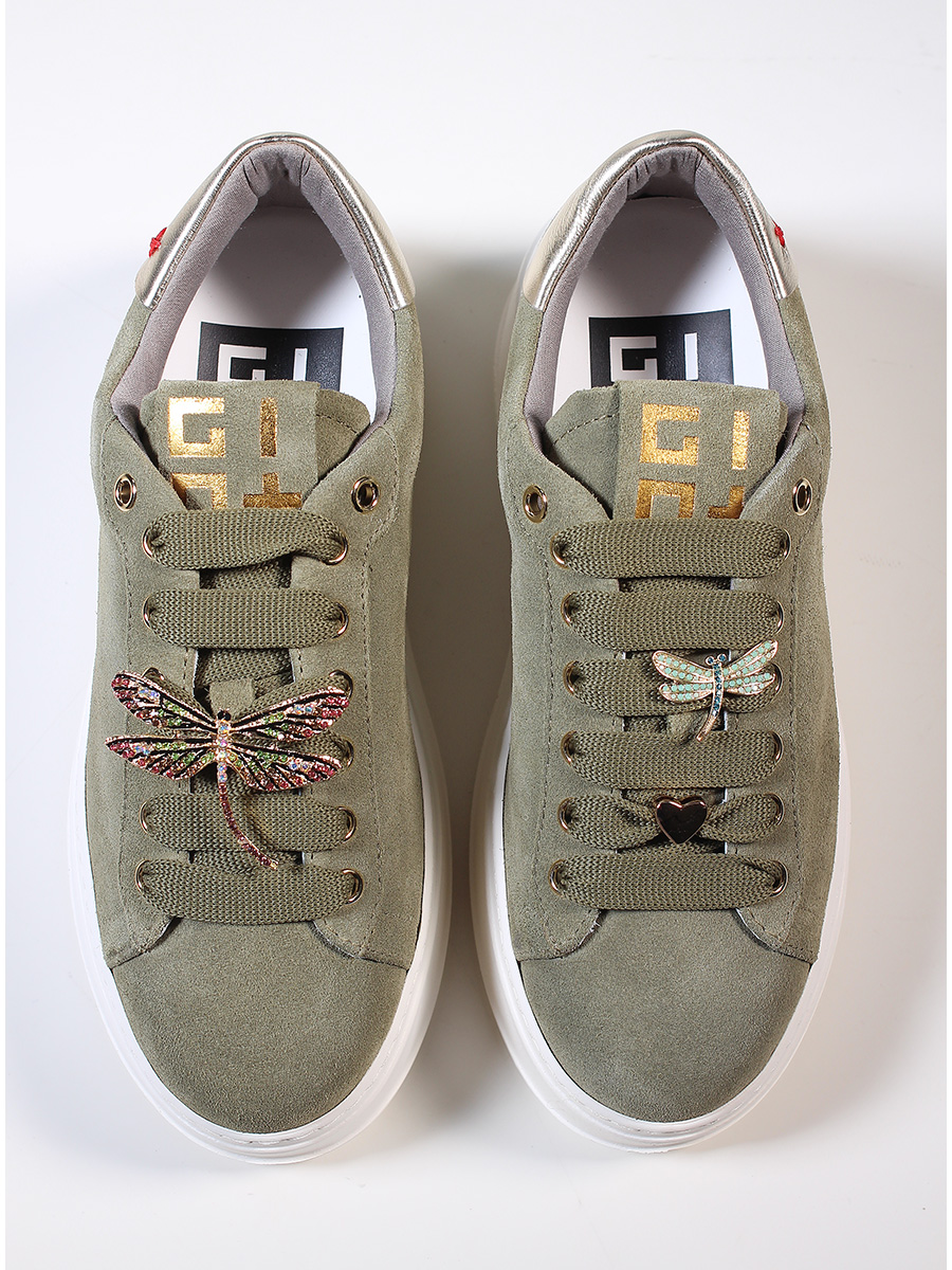 : Leather details, Laminated details, Removable applications, Logo, Rhinestones, Gold details