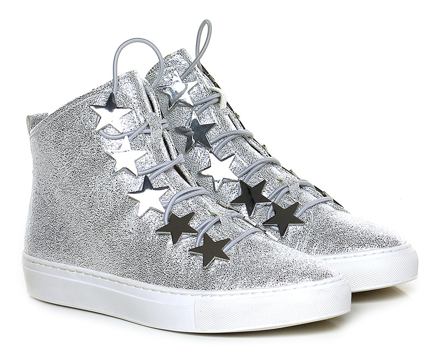 Sneaker in pelle laminata effetto crack con zip su lato interno e passalacci stars. Suola in gomma, tacco 25.