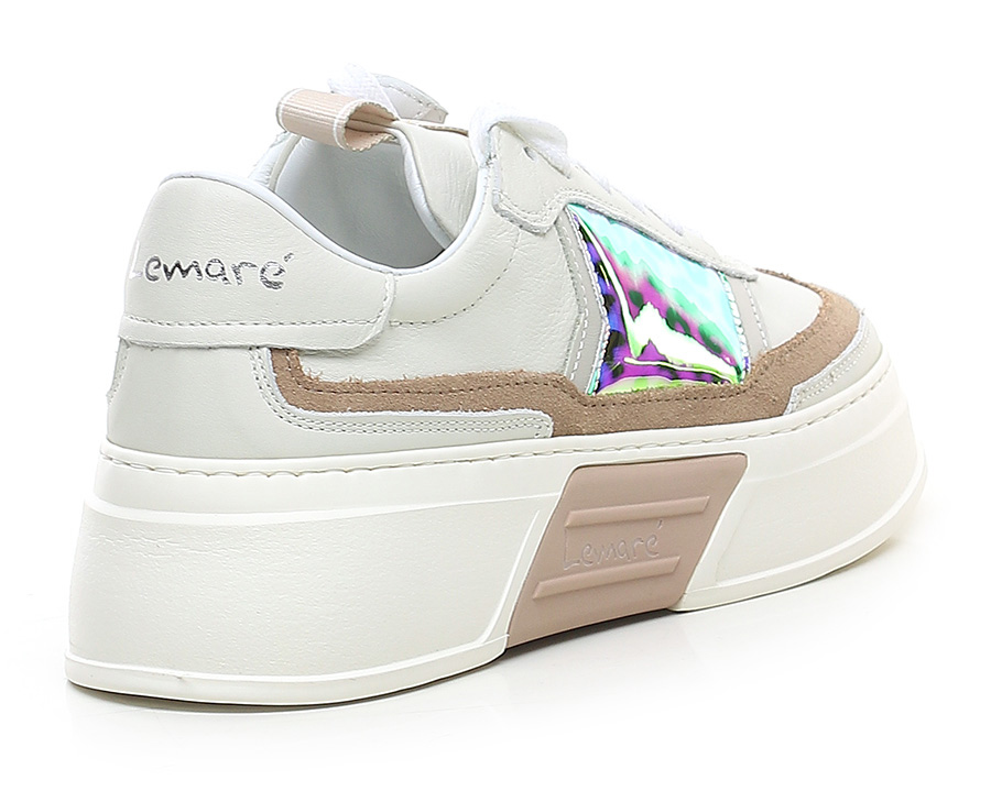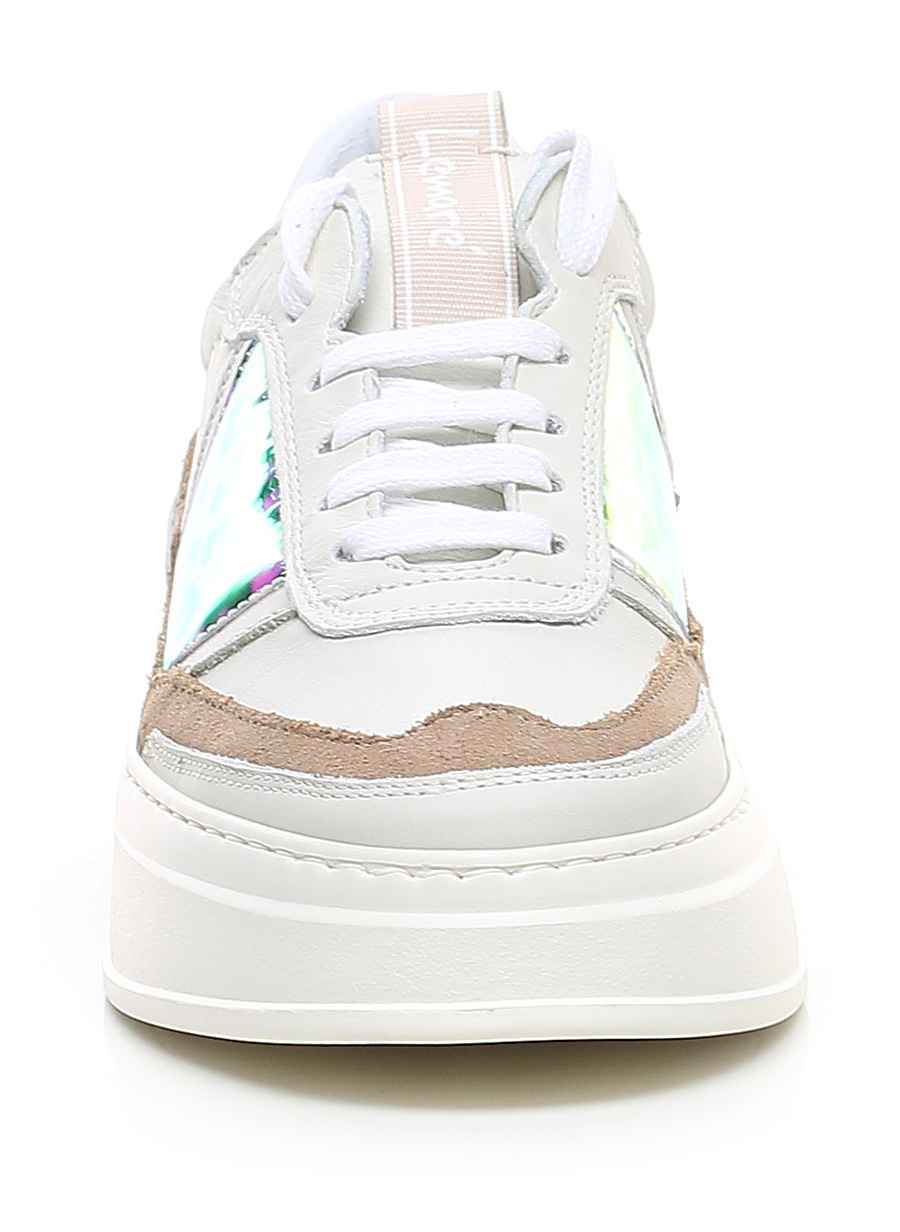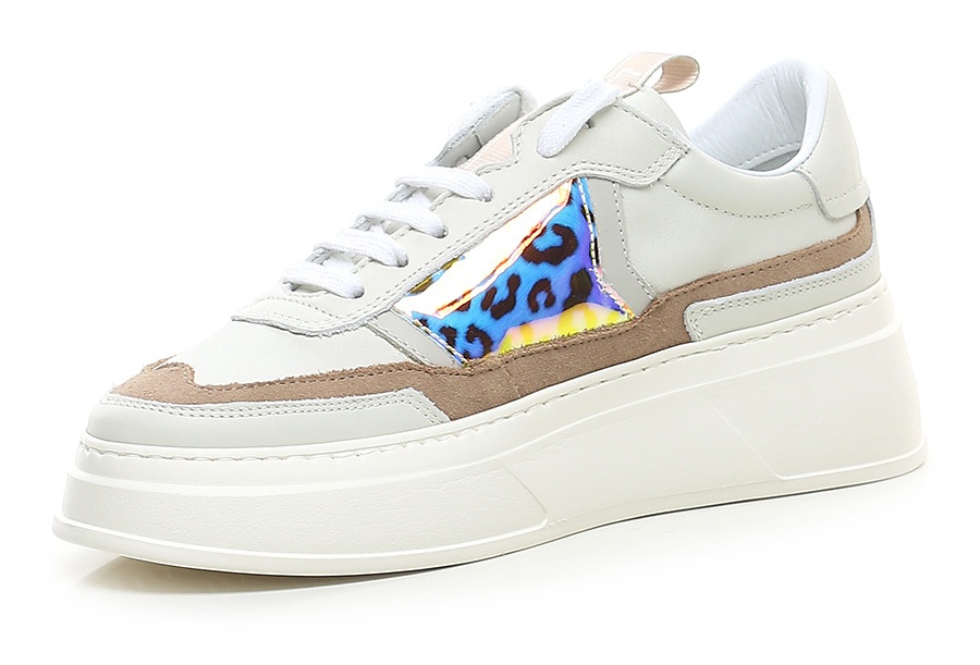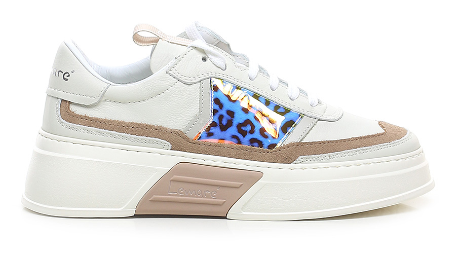Leather and suede sneaker with leopard-effect mirrored leather insert. Rubber sole: 45mm heel height, 30mm platform with 15mm ledge.
