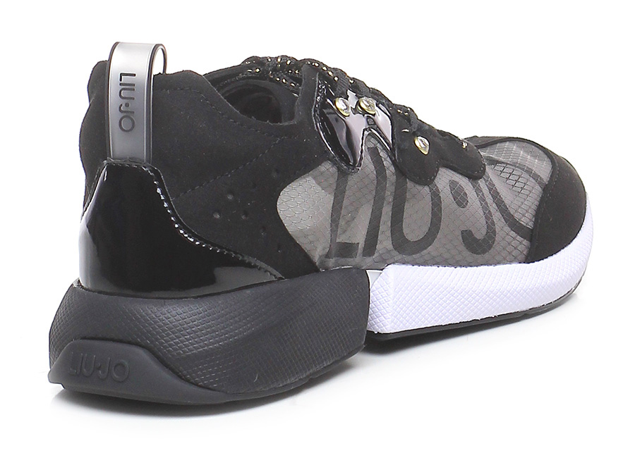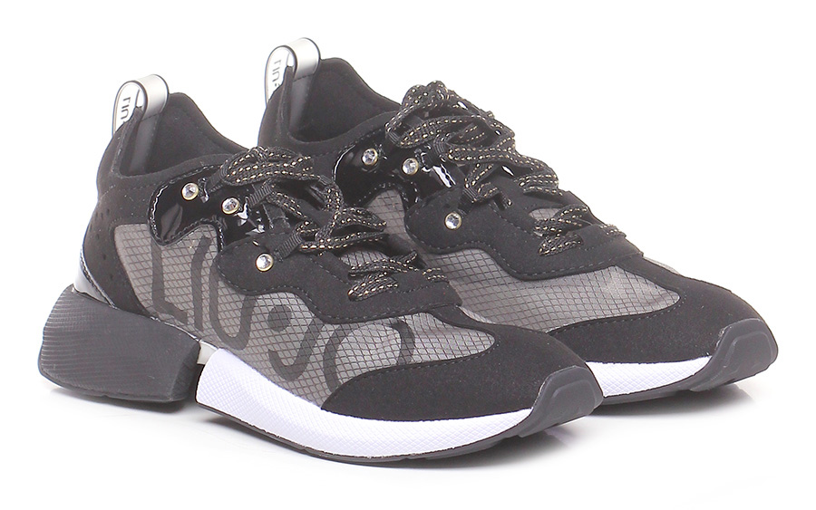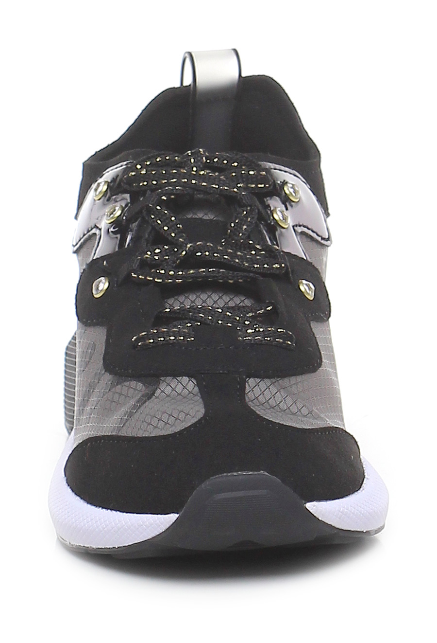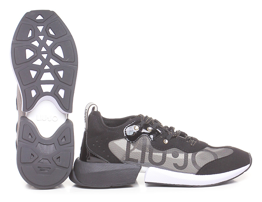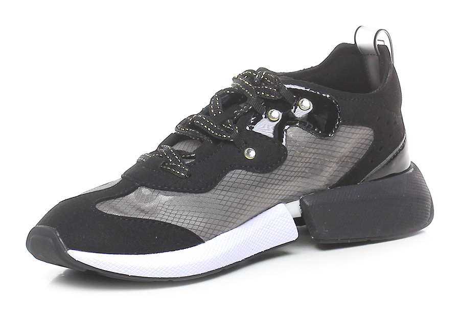 Sneaker in technical fabric and laminated eco leather, rubber sole. Sole height: 40, platform 20 with 20 ledge.