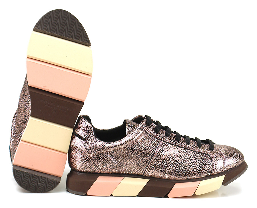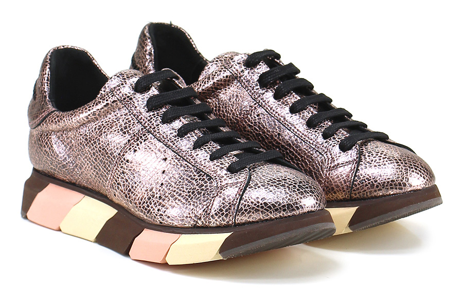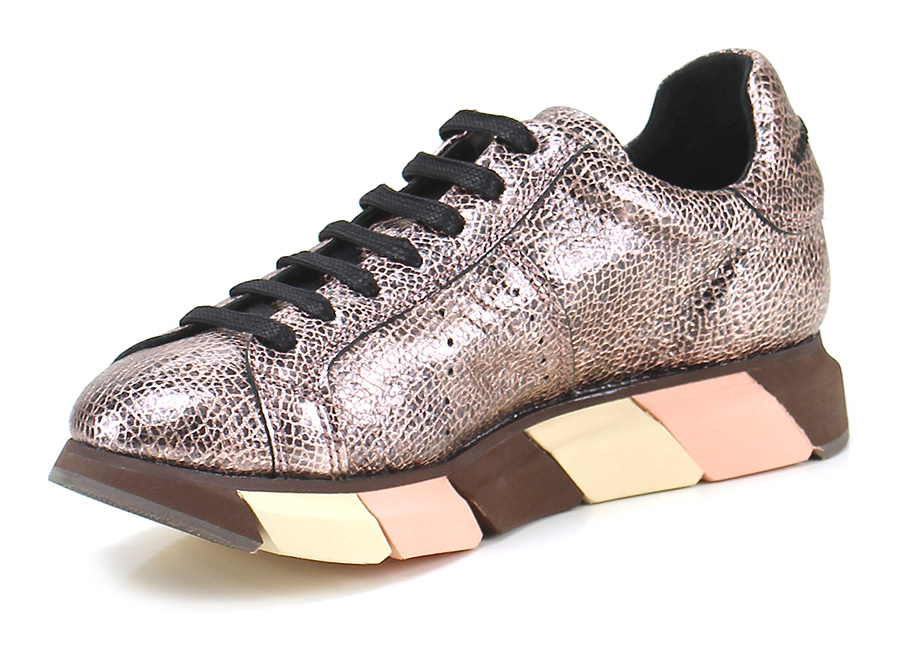 Sneaker in crack effect laminated leather with rubber sole. Heel 35.