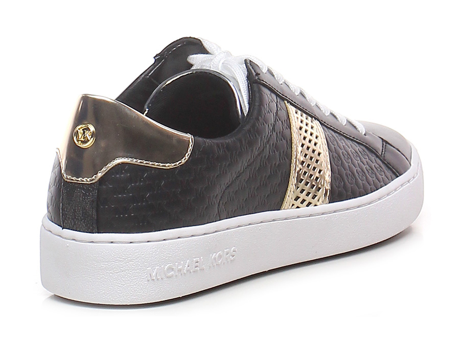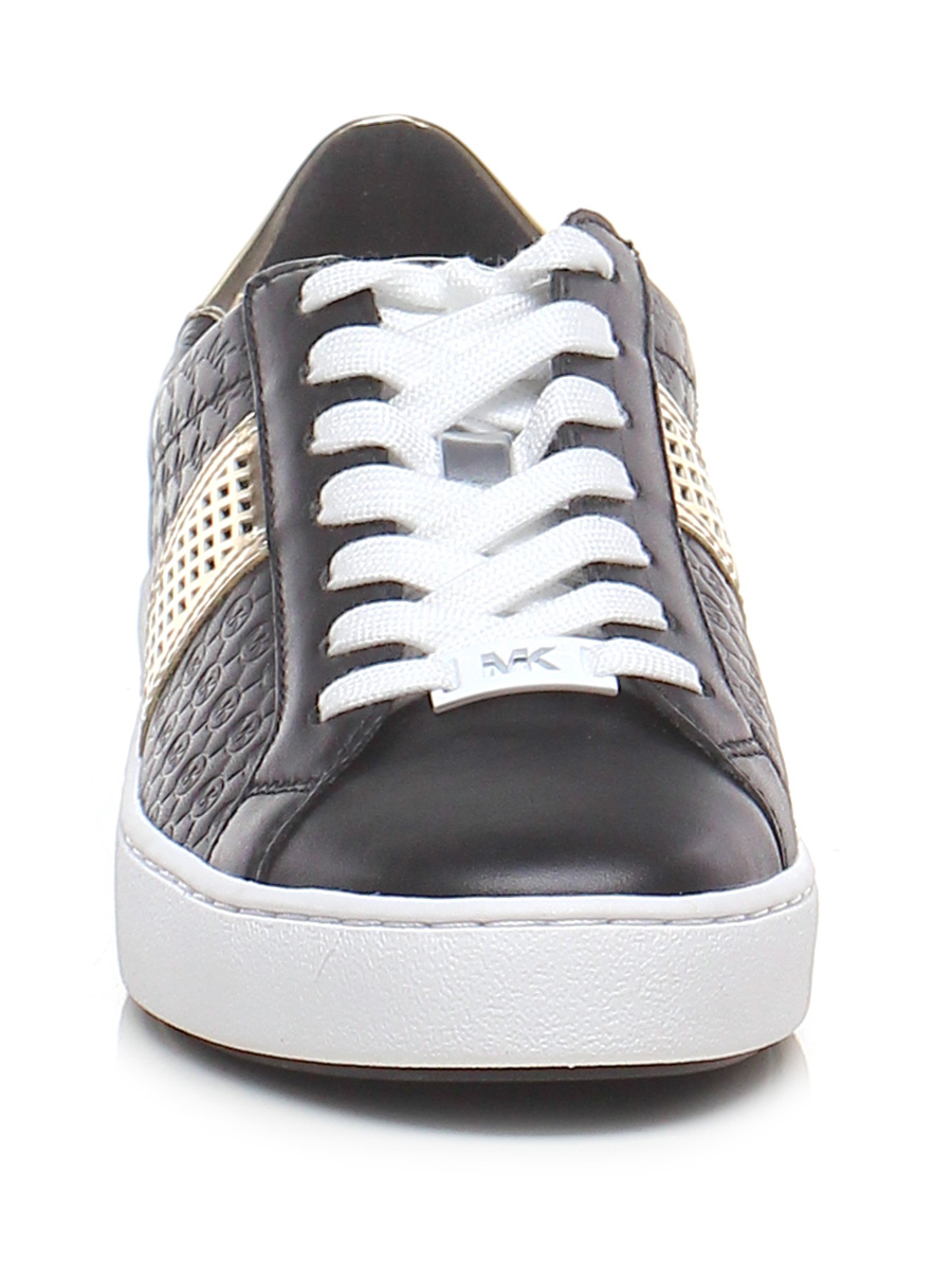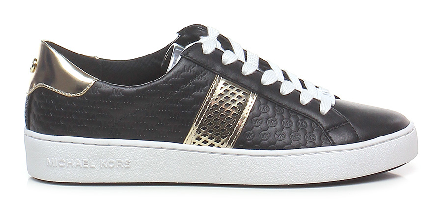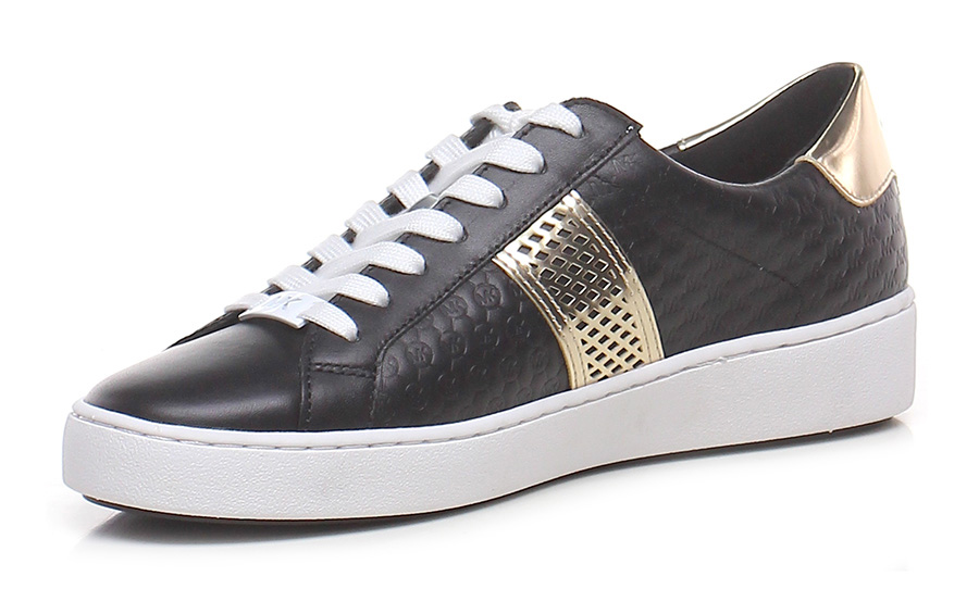 Leather sneaker with laminated eco leather heel tab, rubber sole. Sole height 30, platform 20 with ledge 10.