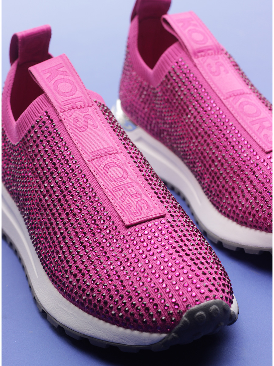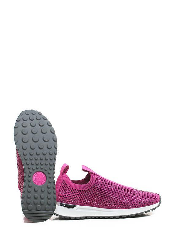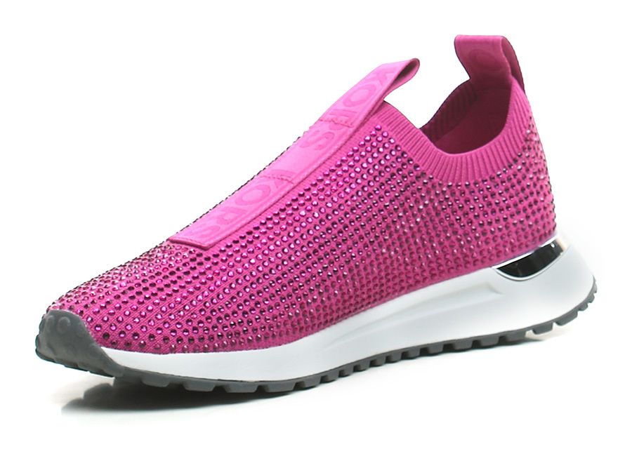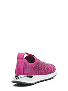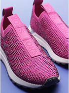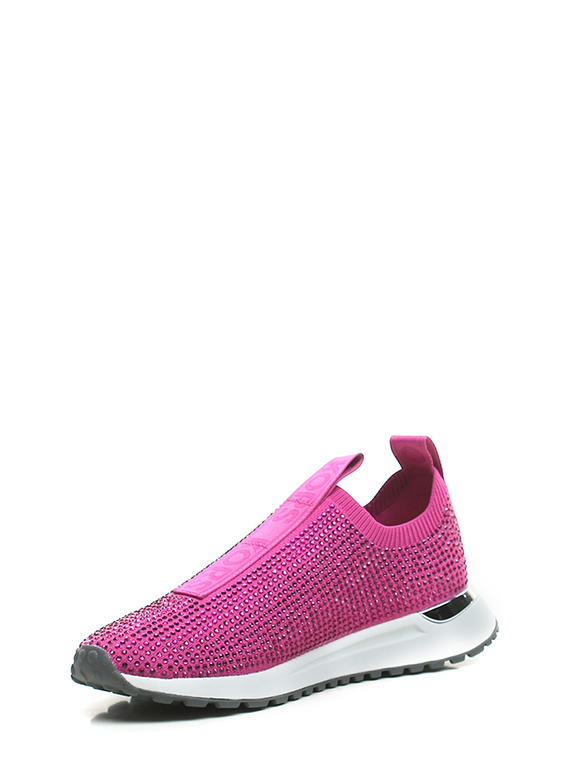 Sneaker in stretch fabric and rhinestones with rubber sole. 35mm heel height, 20mm platform with 15mm ledge.