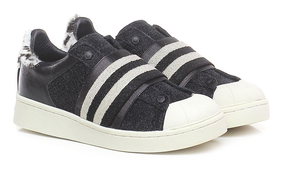 Sneaker in pelle e tessuto lurex, fascia elastica frontale elasticizzata con talloncino in cavallino, suola in gomma. Altezza suola: 35, platform 20 con battuta 15.
