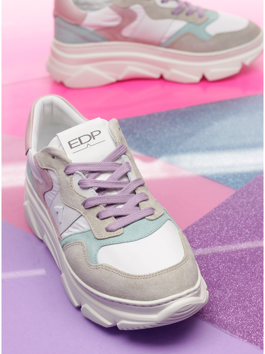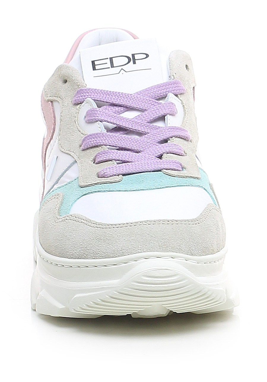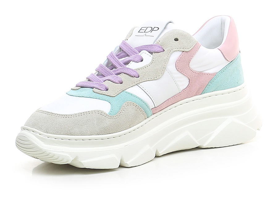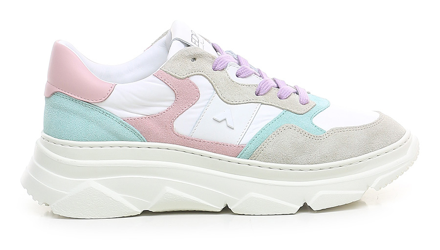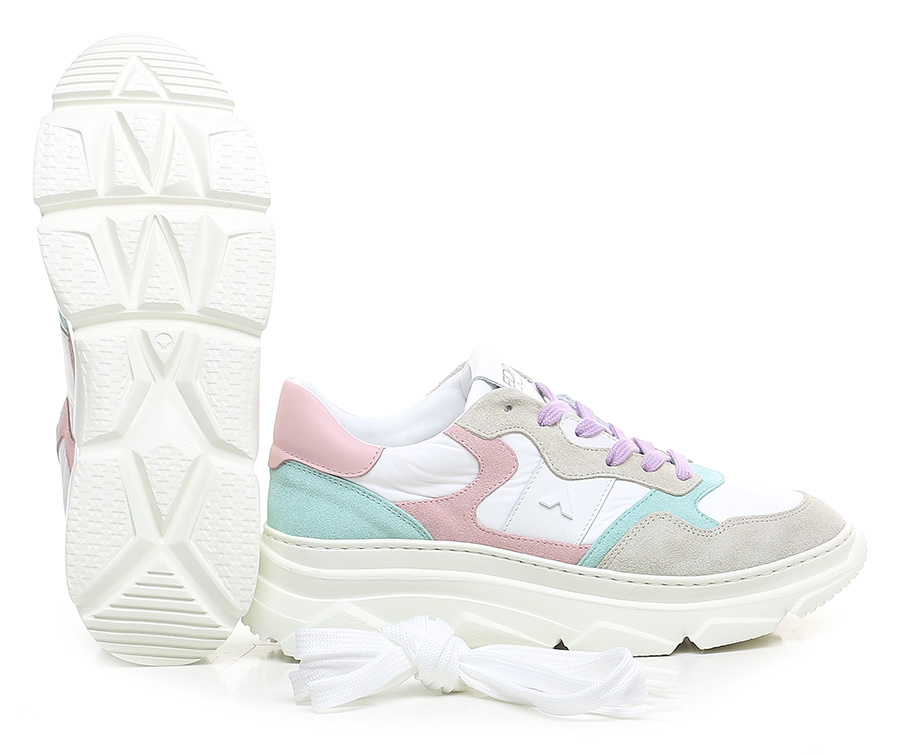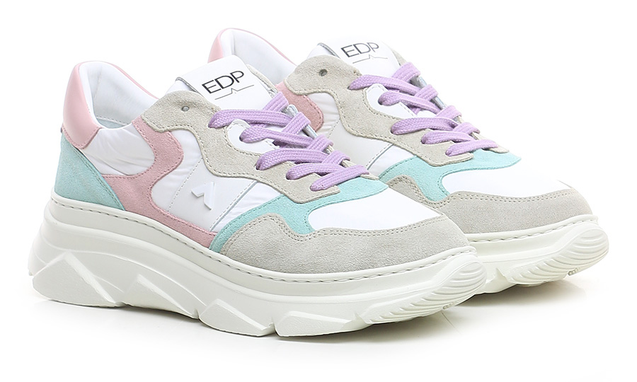 Sneaker in fabric, suede and imitation leather with rubber sole. 50mm heel height, 30mm platform with 20mm ledge.