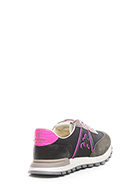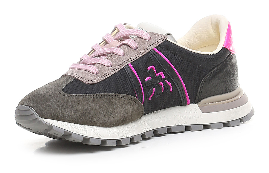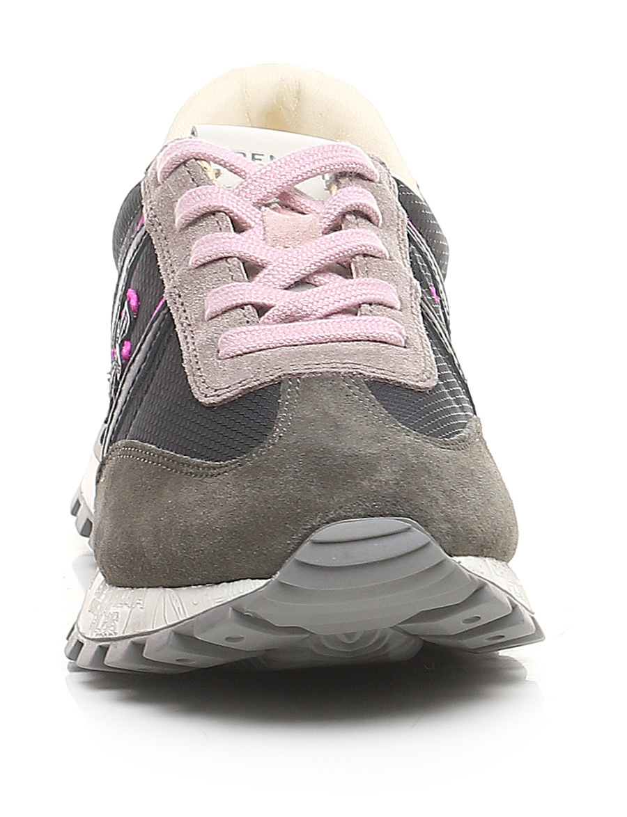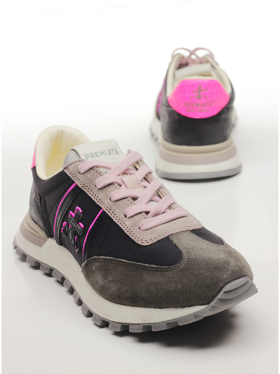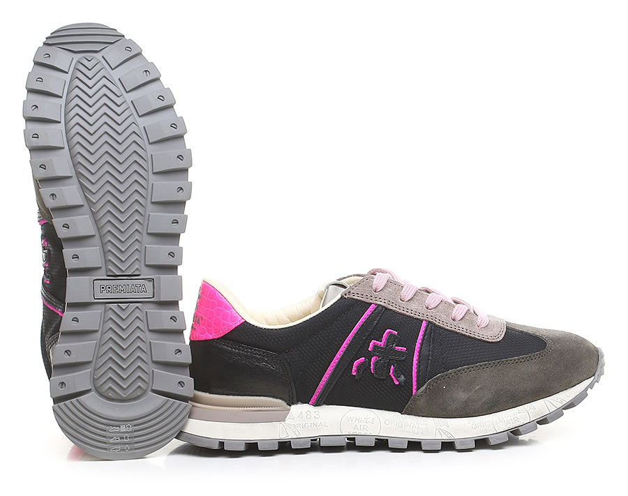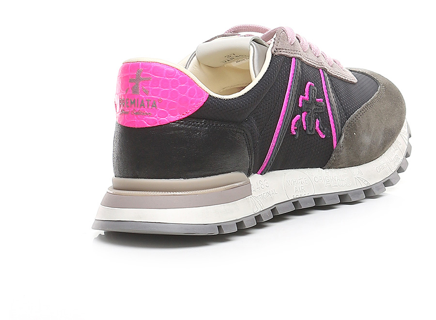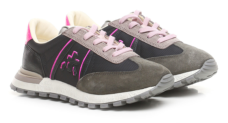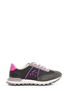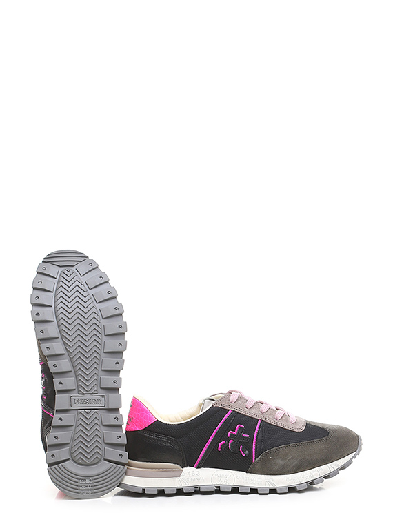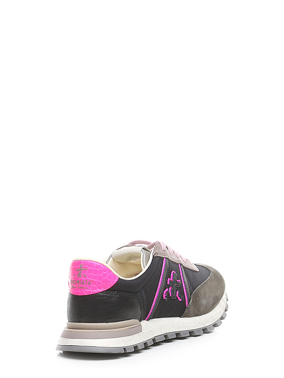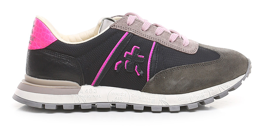 Sneaker in fabric and suede with leather inserts and python print leather heel. Rubber sole. Heel height 30mm, platform 20mm with 10mm ledge.