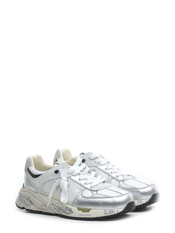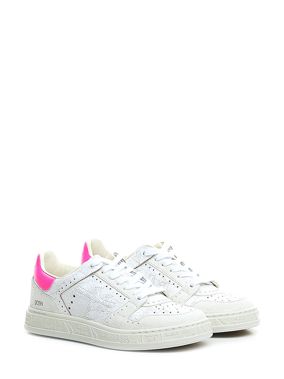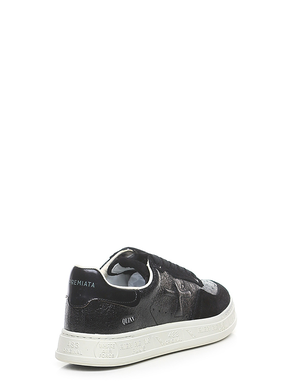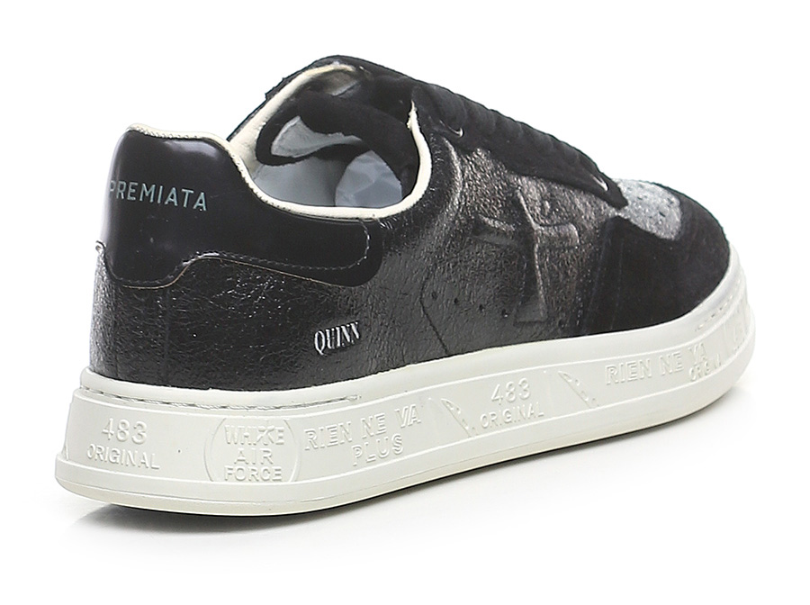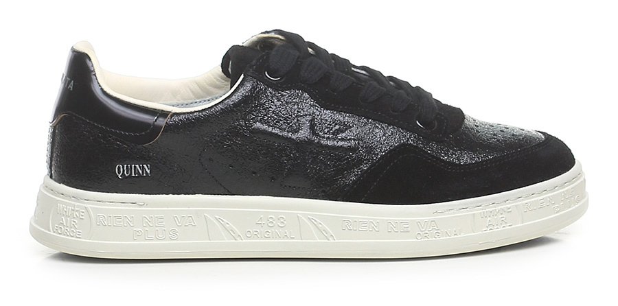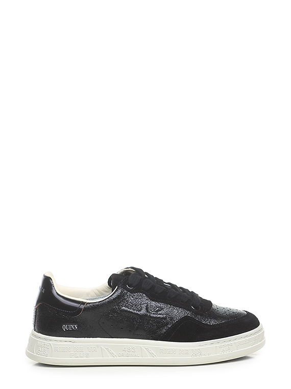 Shiny crack-effect leather and suede sneaker with brushed leather heel tab and rubber sole. Heel height 30mm, platform 25mm with 5mm ledge.