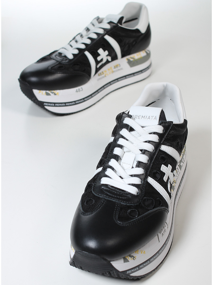Premiata brand stands for avant-garde and expressiveness. Its own purpose is to satisfy the requests of people detesting cliché and trusting in freedom. Premiata handmade shoes are the symbol of outstanding creativity. The basic colour of this collection is white which gives the possibility to create new shapes. Premiata collection is characterised by elegance, comfort and unique design, as well as precise dexterity and scrupulous attention to detail.