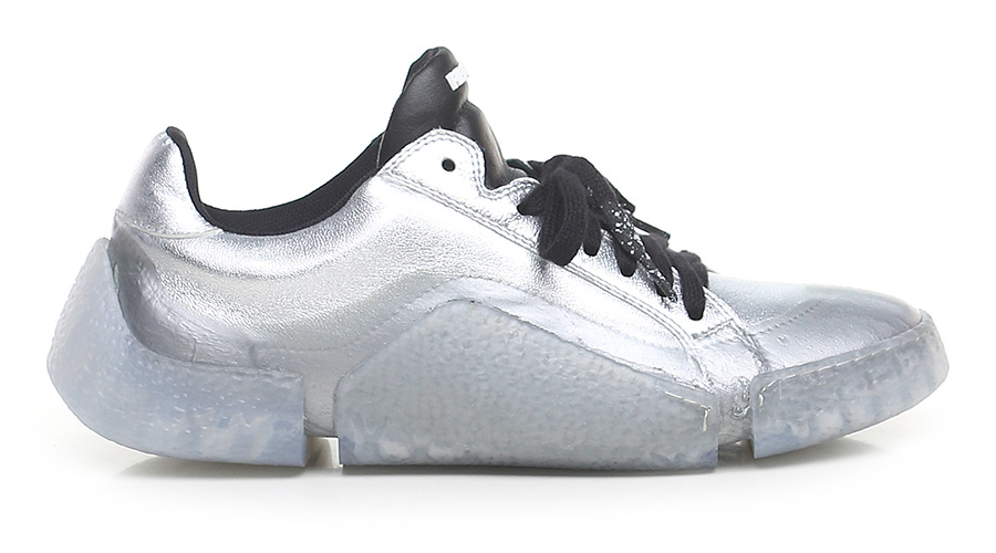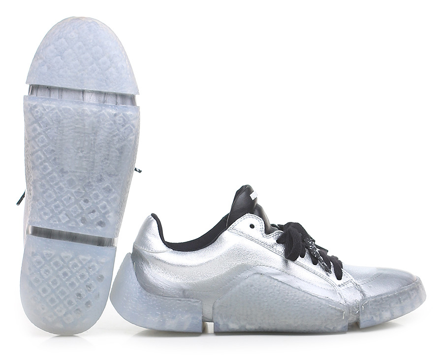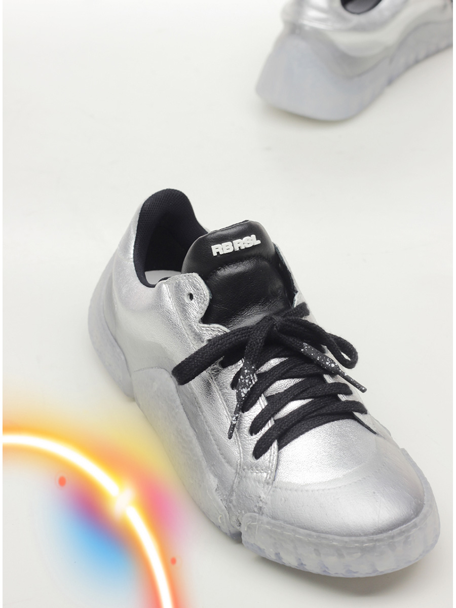 Sneaker in laminated leather and rubber with rubber sole. Heel height 25mm, platform 15mm with 10mm ledge