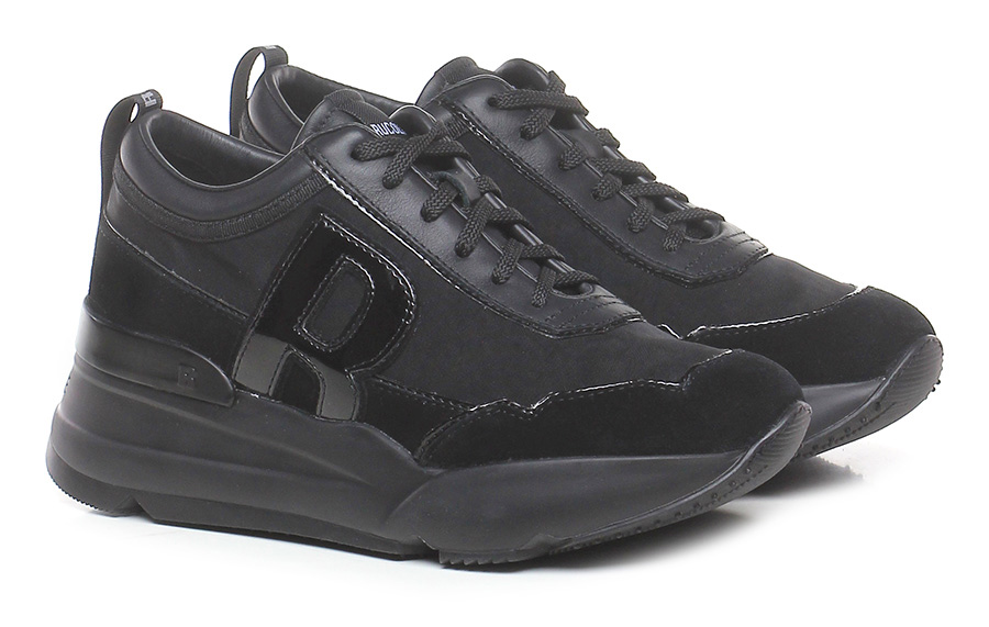 Sneaker in tessuto, pelle, camoscio e vernice, suola in gomma. Altezza suola: 50, platform 30 con battuta 20.