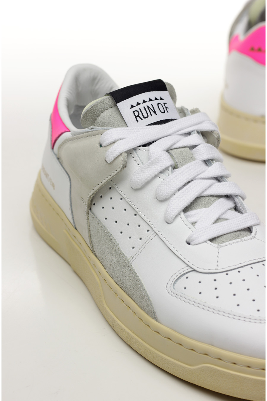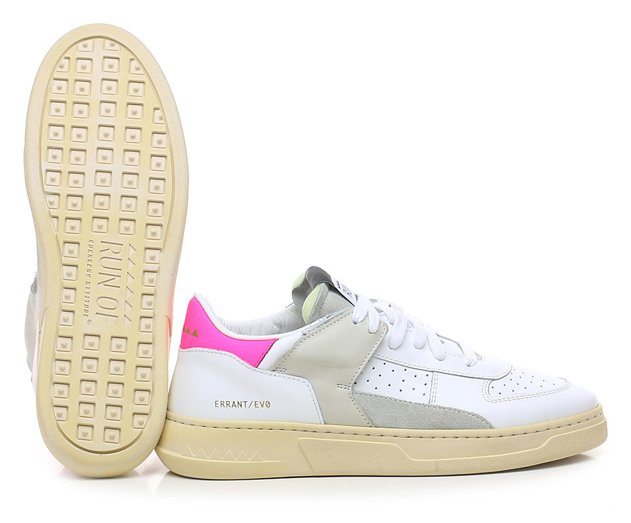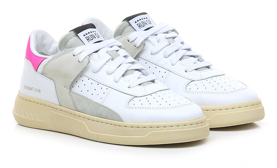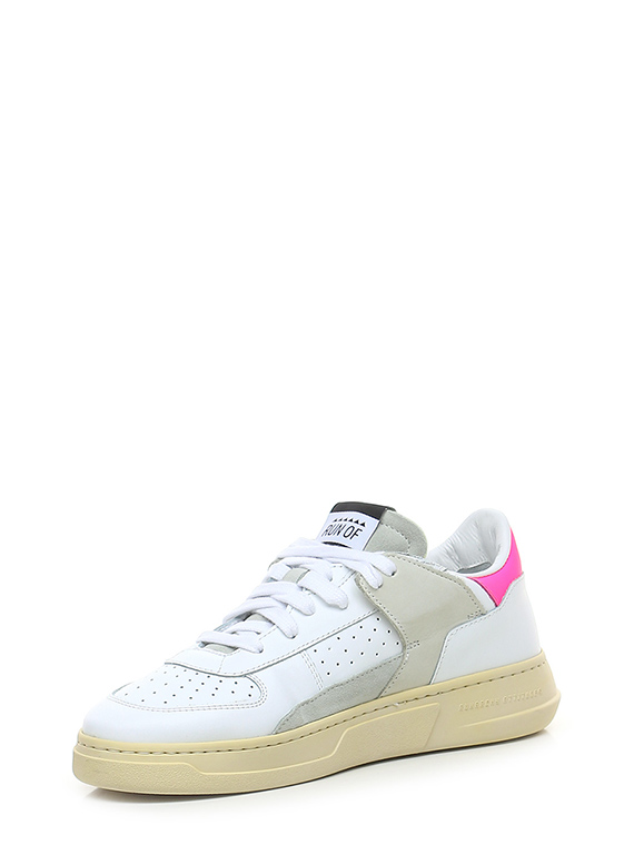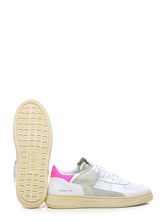 Leather, suede and nubuck sneaker with rubber sole. 35mm heel height, 25mm platform with 10mm ledge.