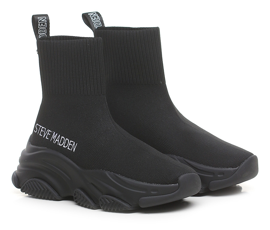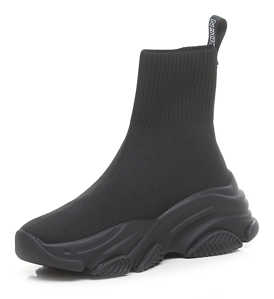 Stretch fabric sneaker with rubber sole. 55mm heel height, 40mm platform with 15mm ledge.