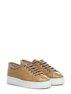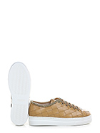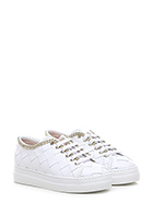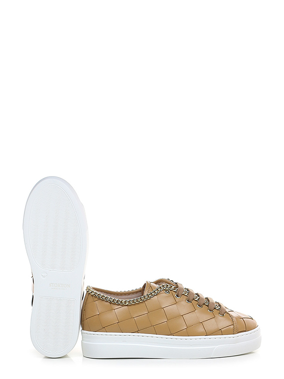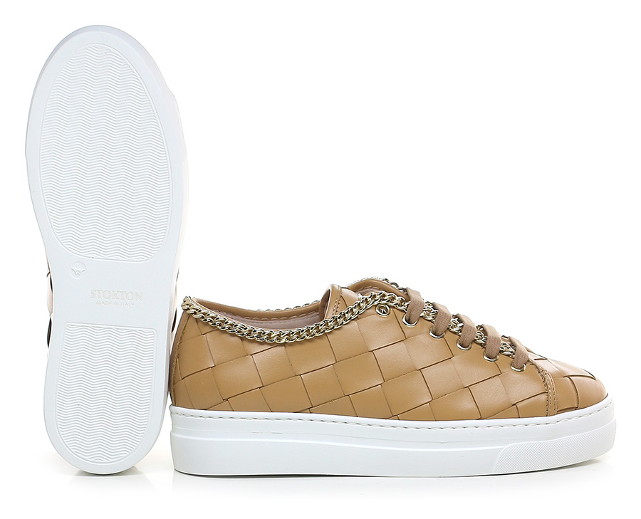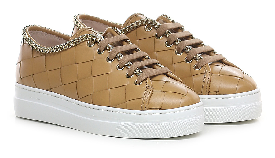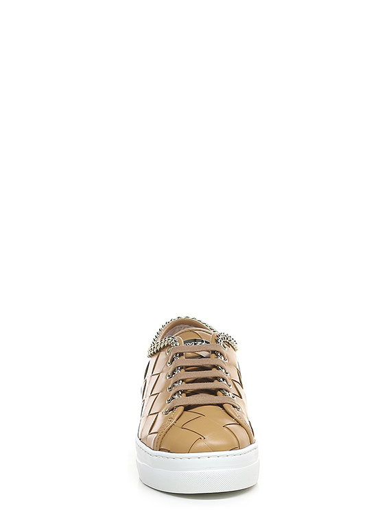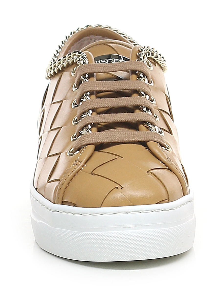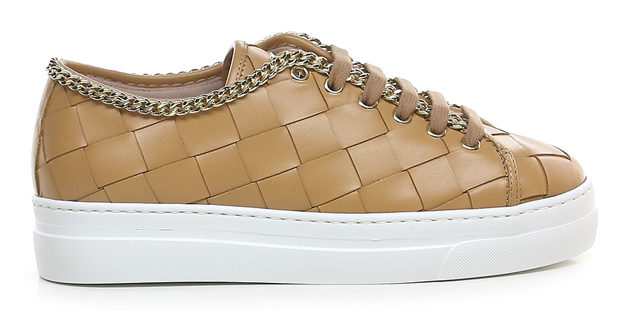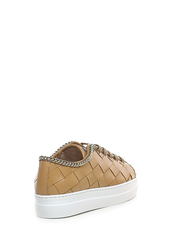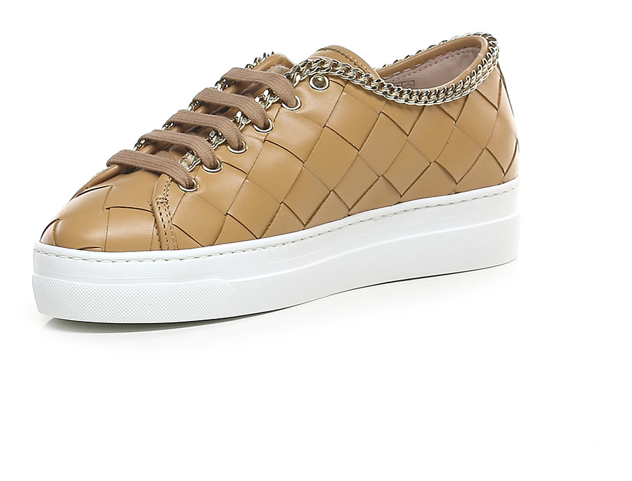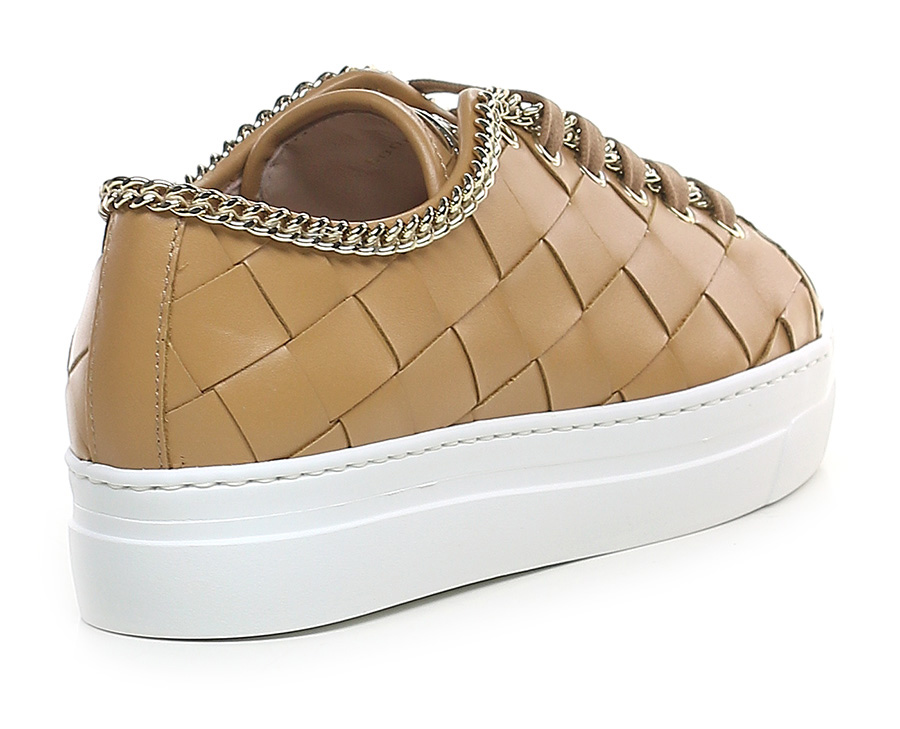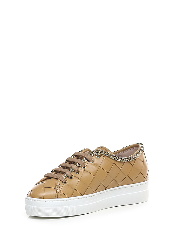 Sneaker in woven leather with gold metal chain accessory on the upper profile. Rubber sole. 35mm heel height, 30mm platform with 5mm ledge.