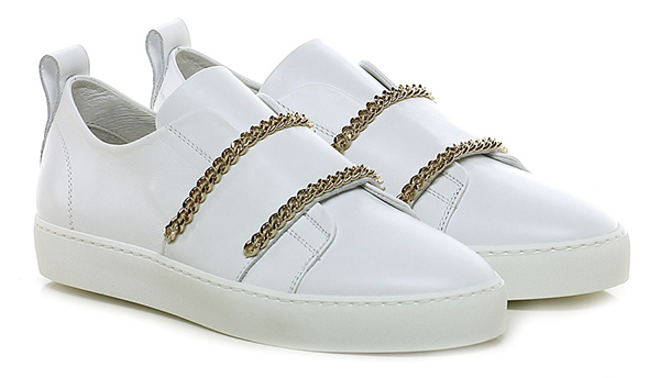 Sneaker in pelle con doppia catenella frontale gold e suola in gomma. Tacco 25.