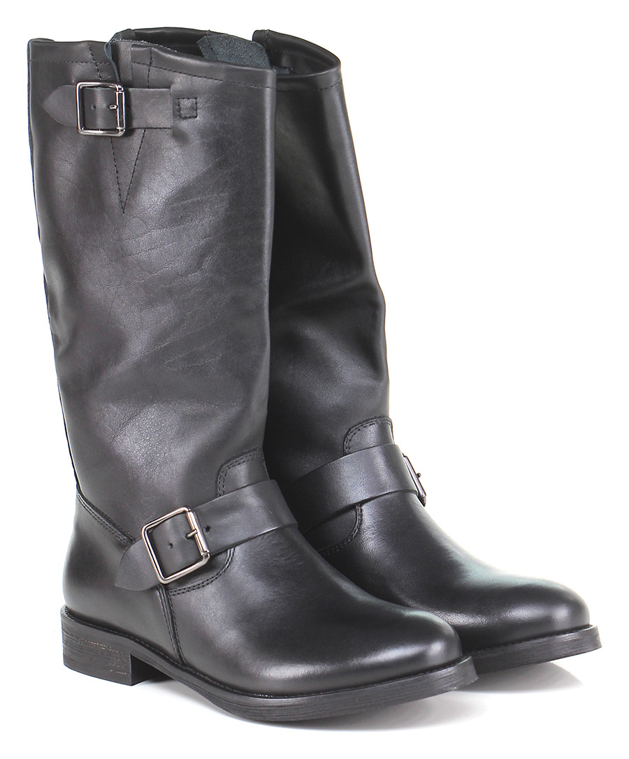 Stivale in pelle vintage con cinturino alla caviglia e suola in gomma. Tacco 30, altezza gambale 280.