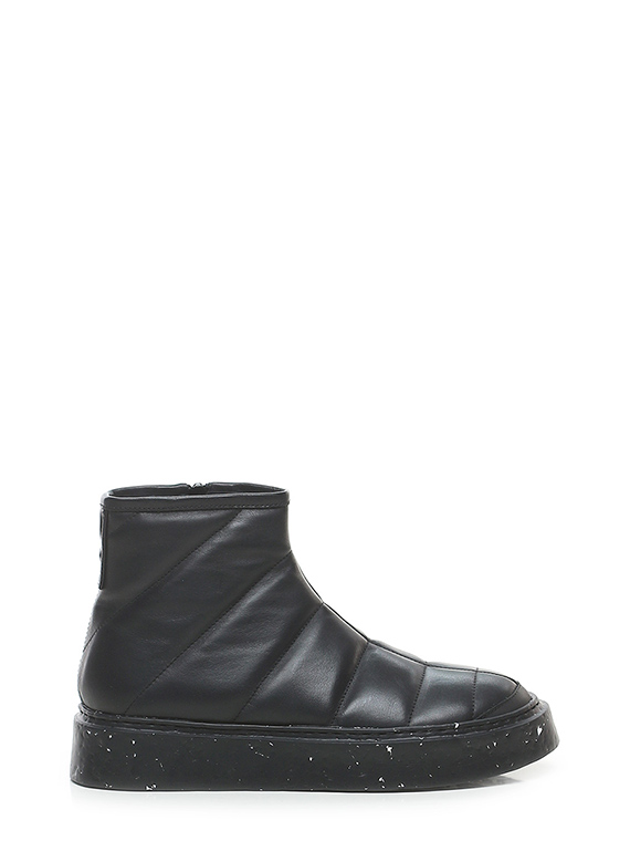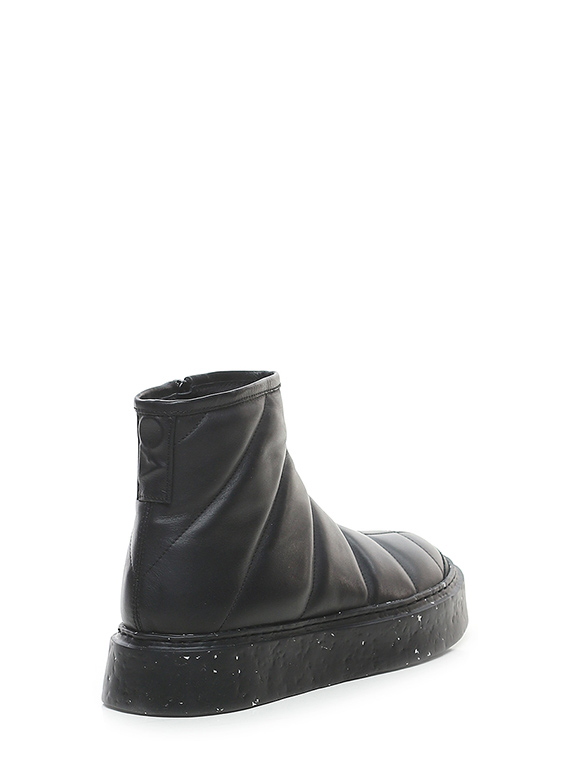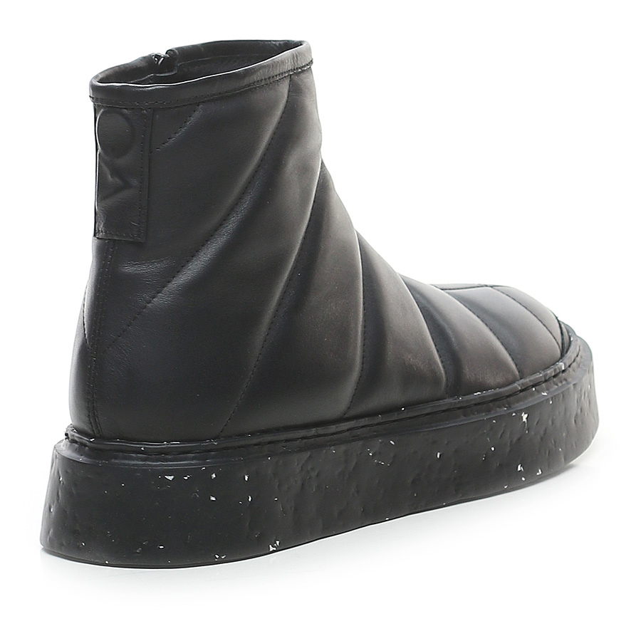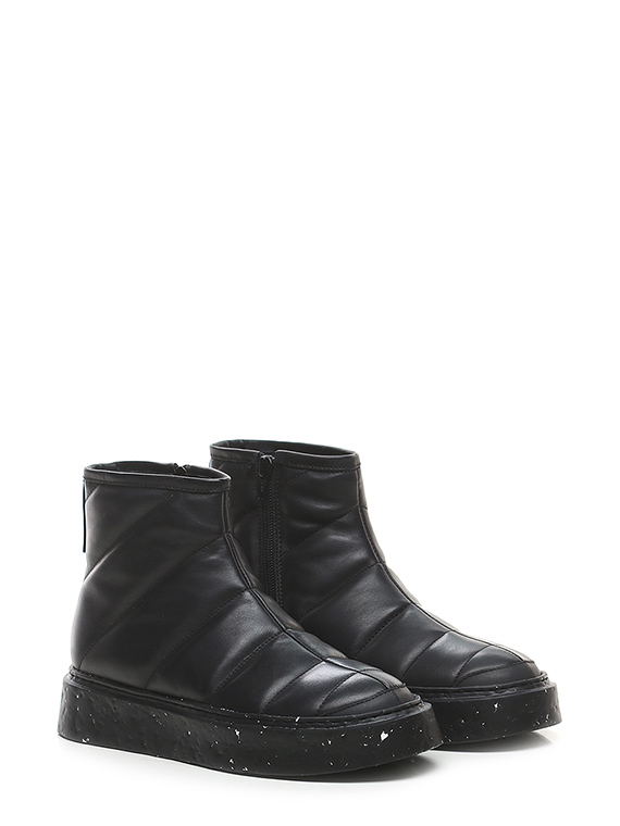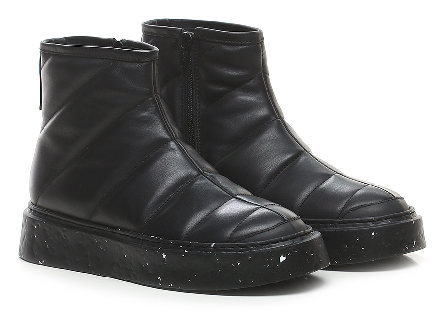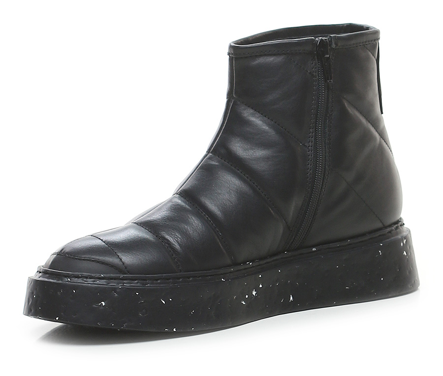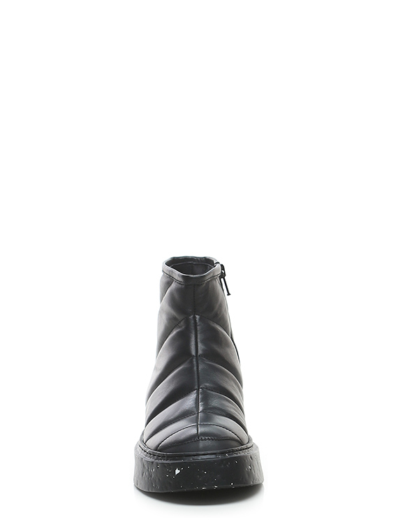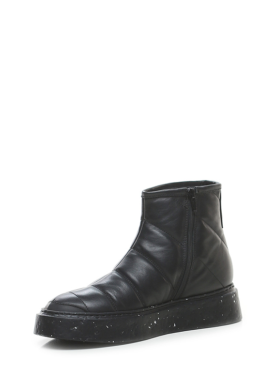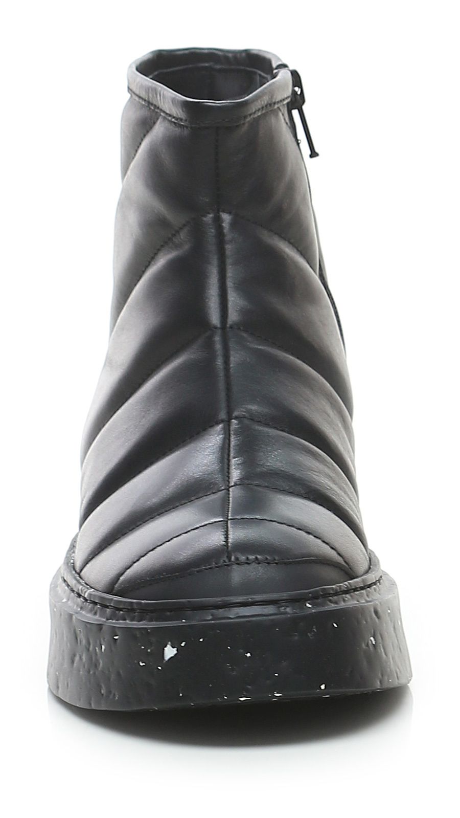 Leather ankle boot with side zip. Extralight rubber sole. 40mm heel height, 30mm platform with 10mm ledge.